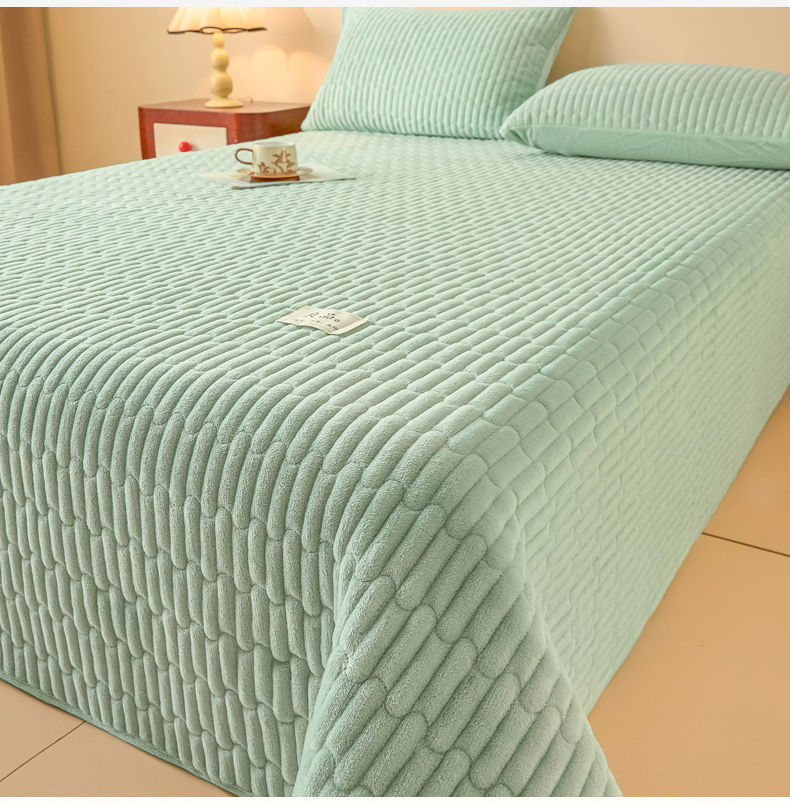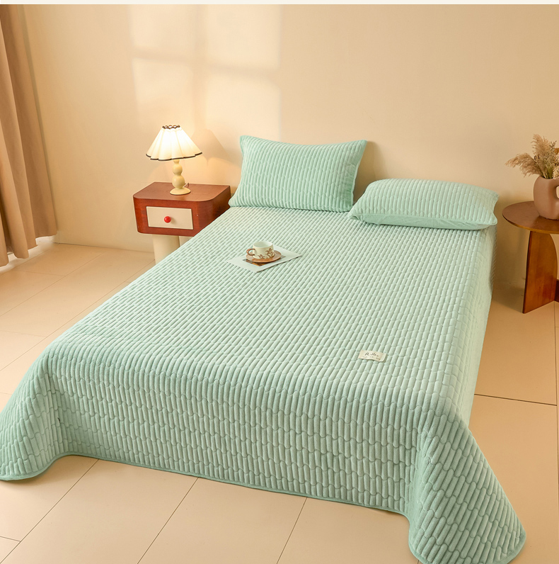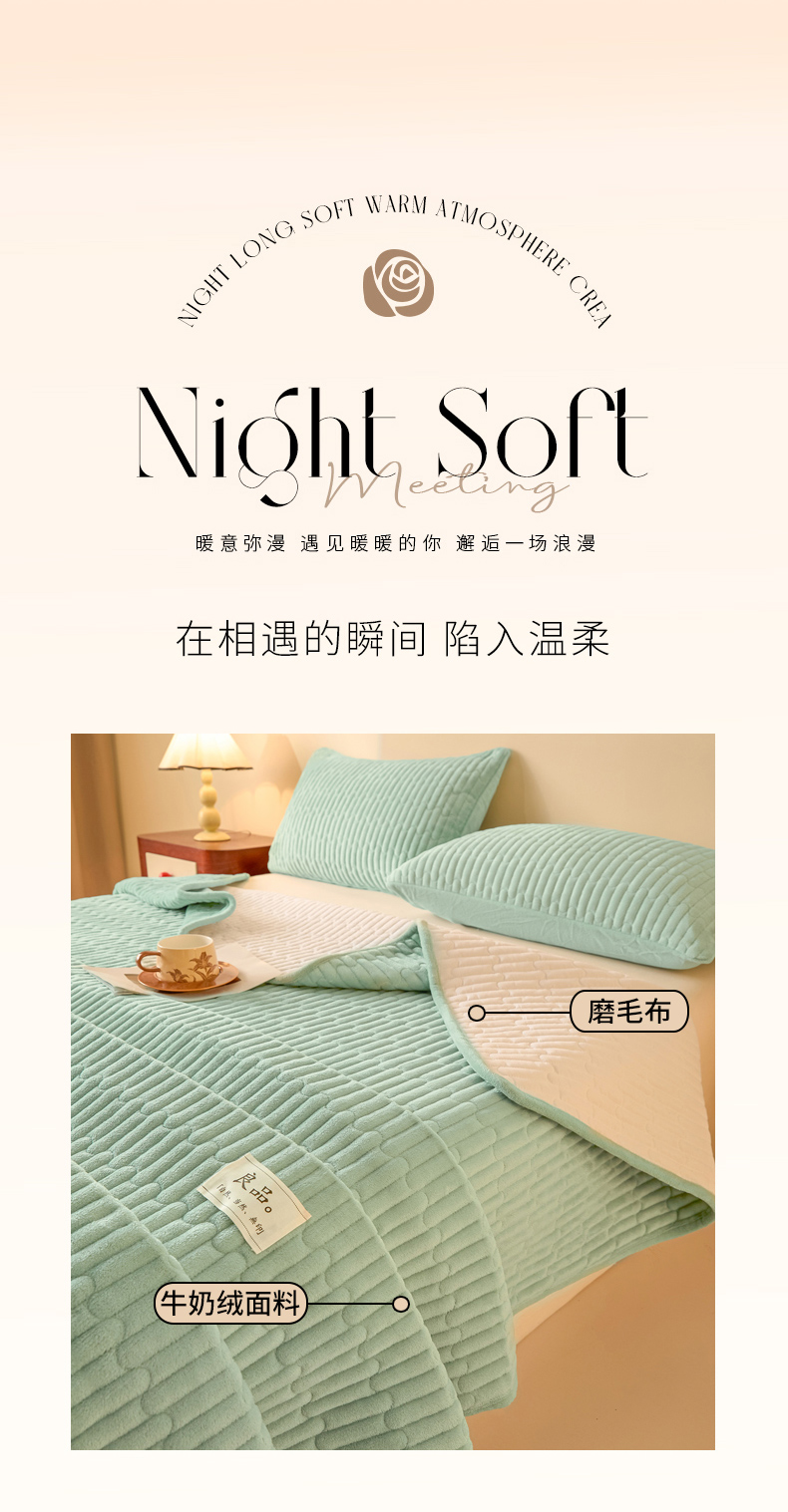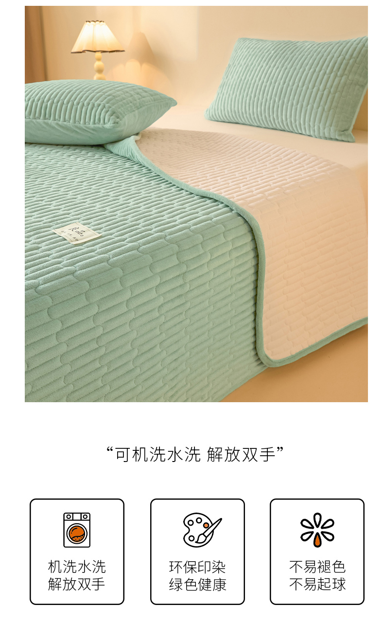 • 91家纺网 家纺一手货源 找家纺 Sweet dreams甜梦 2025新款A类纯色牛奶绒夹棉床盖 清新绿