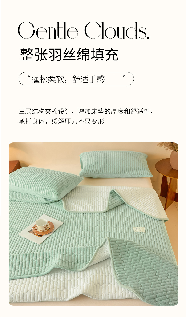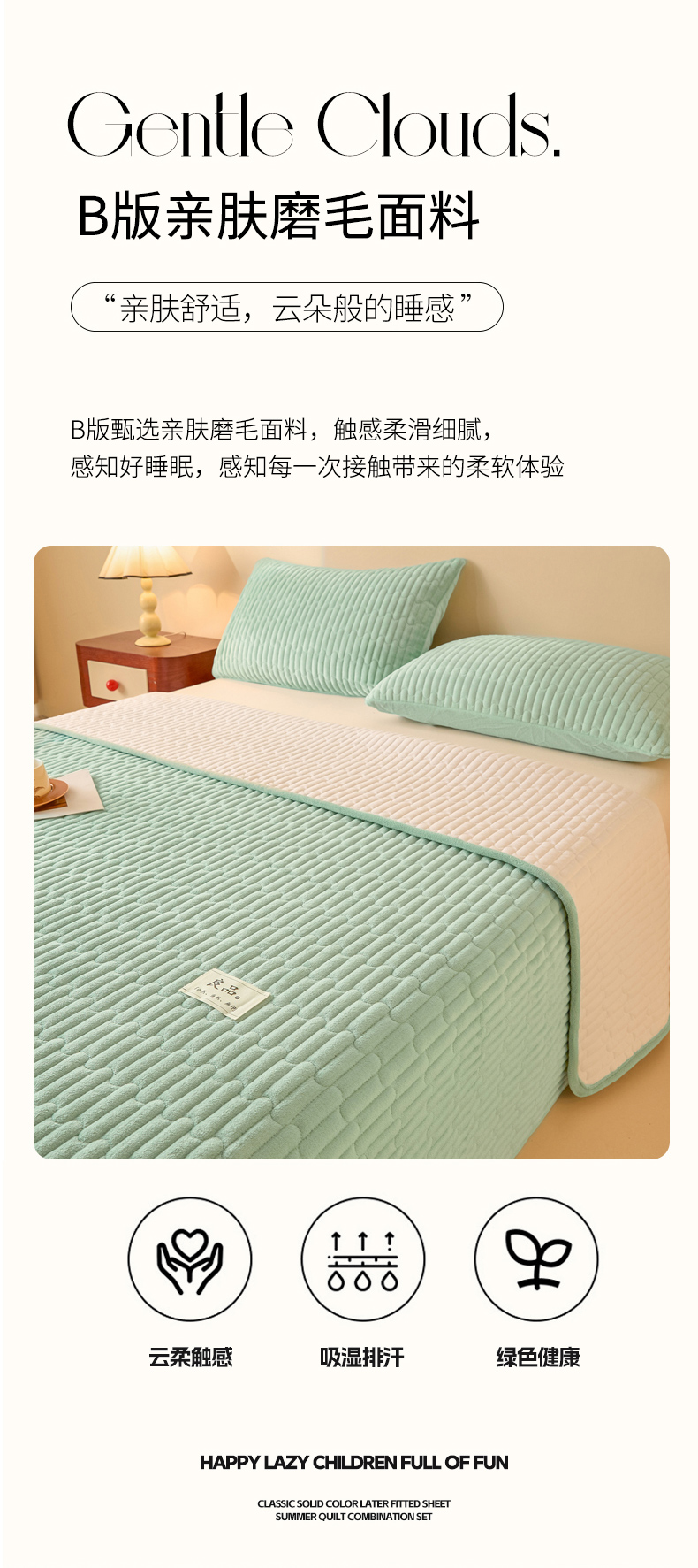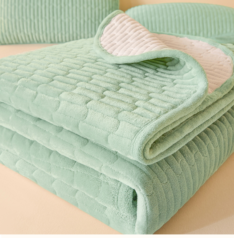 • 91家纺网 家纺一手货源 找家纺 Sweet dreams甜梦 2025新款A类纯色牛奶绒夹棉床盖 清新绿