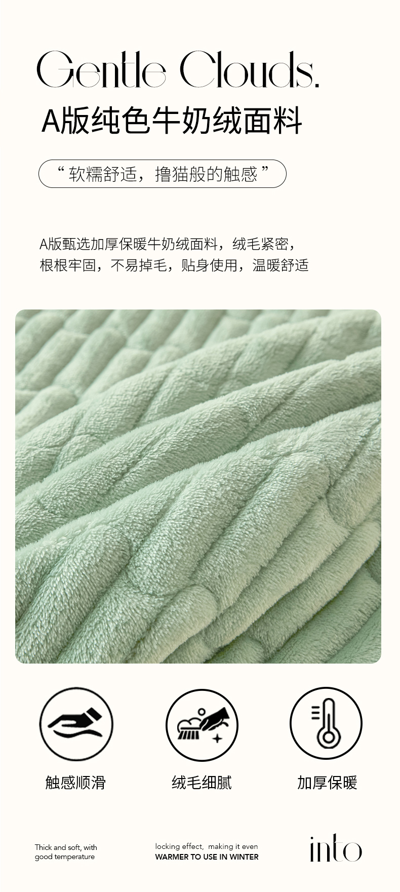 当前位置: 91家纺网 > 商品网购 > 床上用品 > 床盖 > Sweet dreams甜梦 2025新款A类纯色牛奶绒夹棉床盖 清新绿