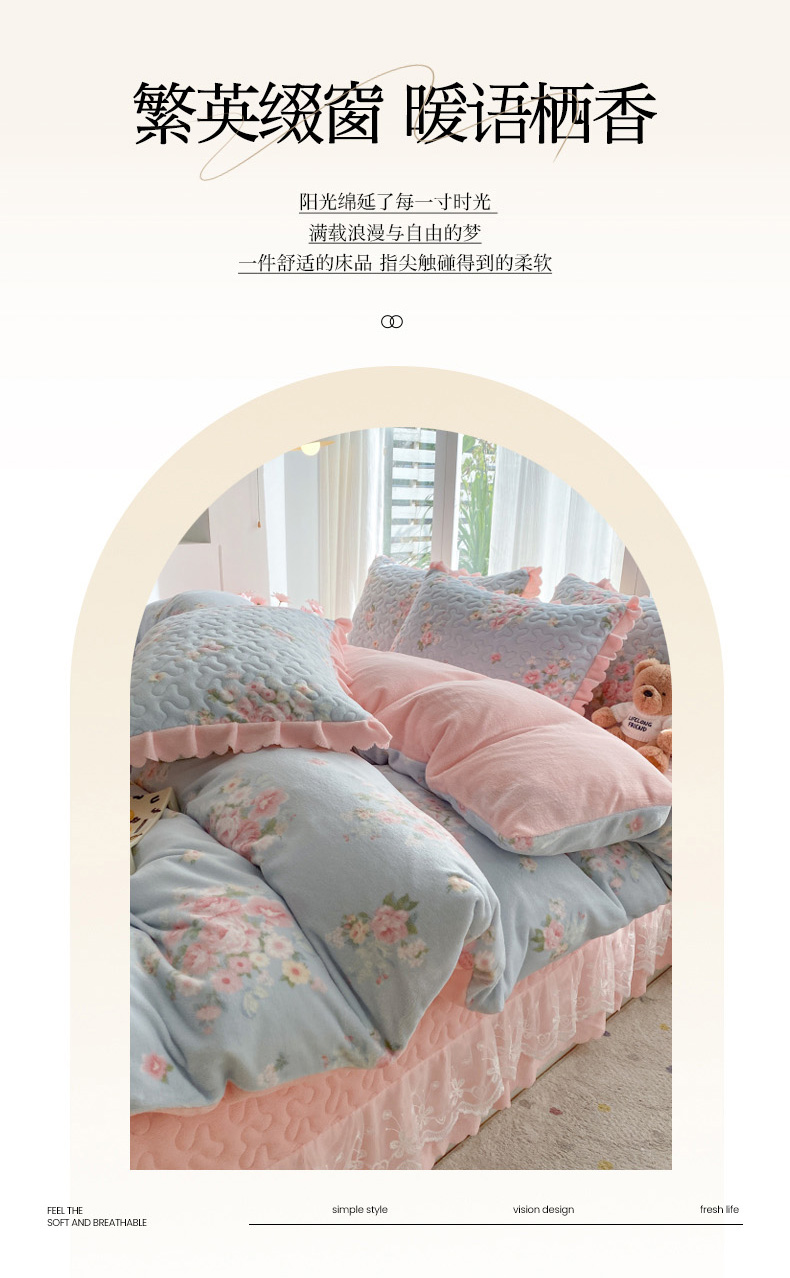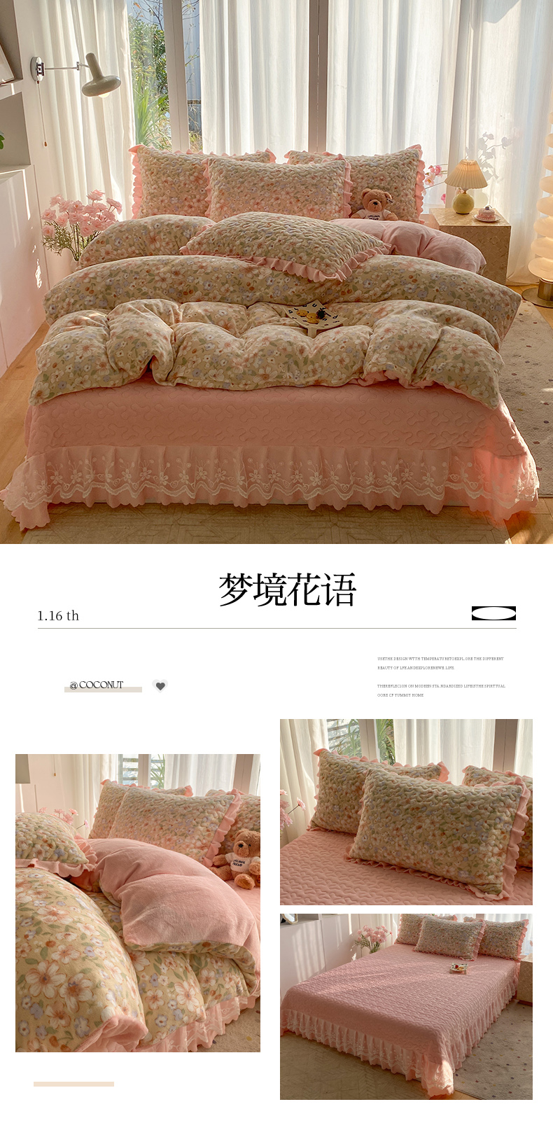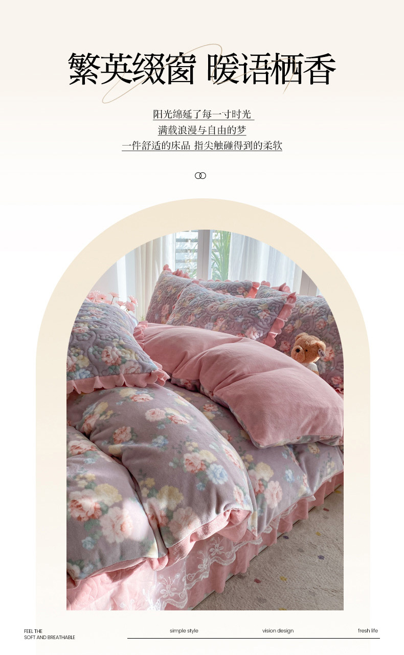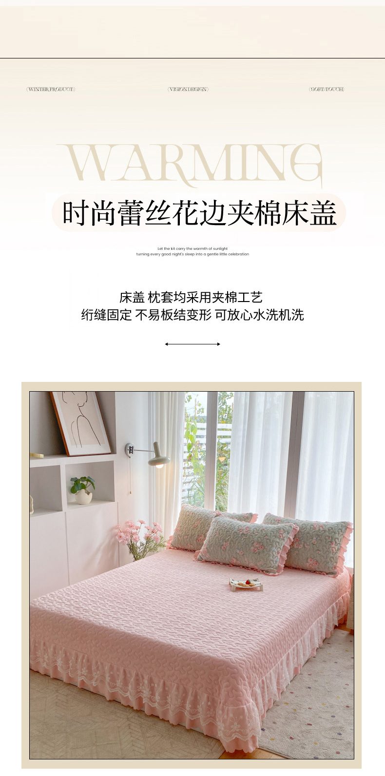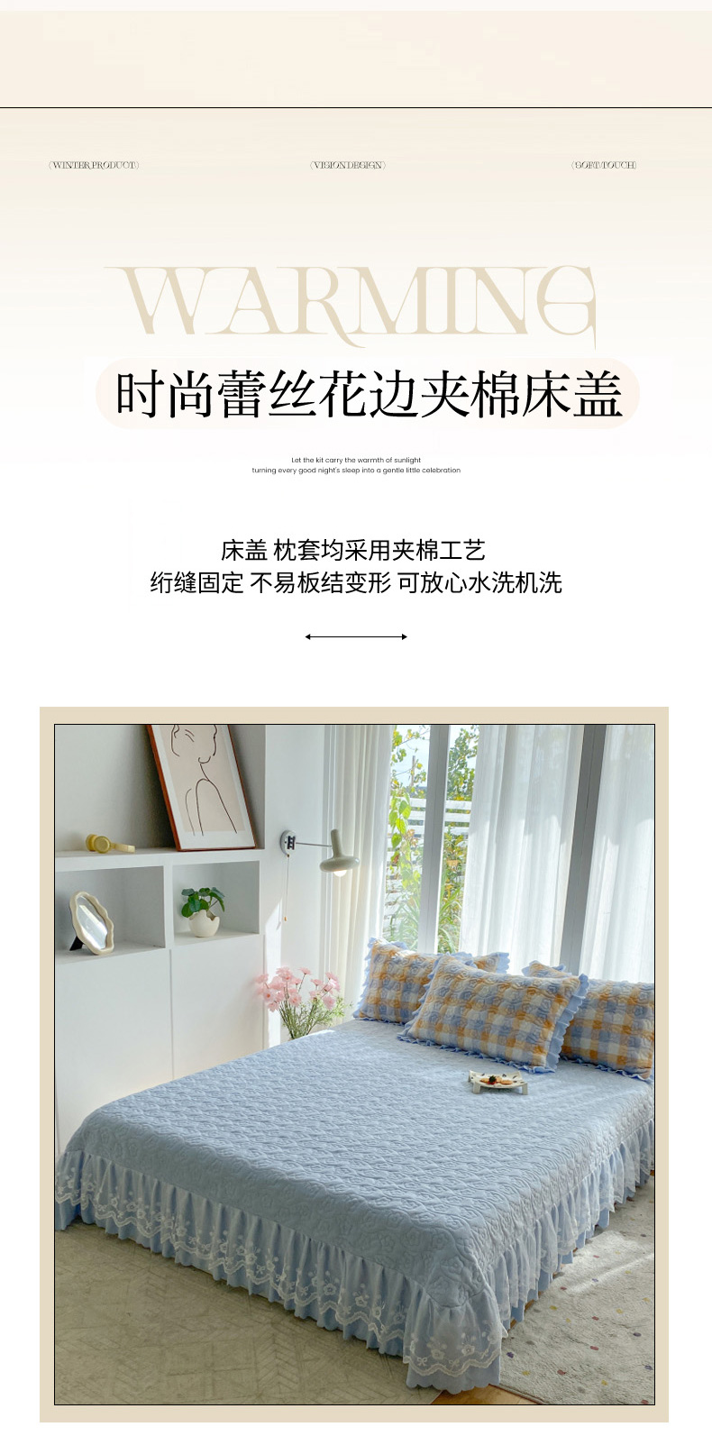 商品名称:(总)钰锦珀家纺 2025新款高克重牛奶绒蕾丝双层花边床盖四件套床盖三件套