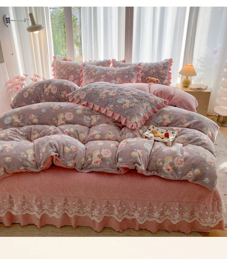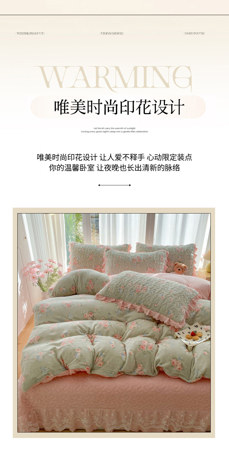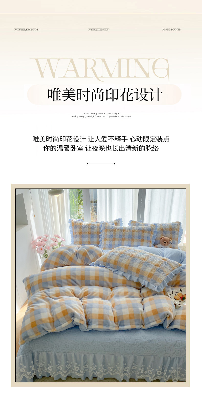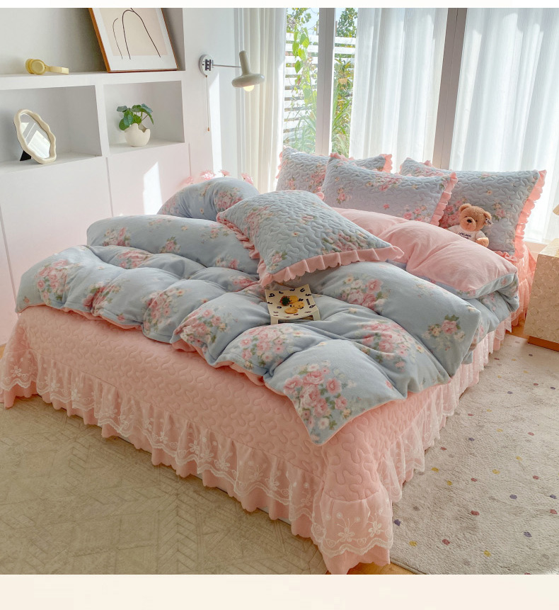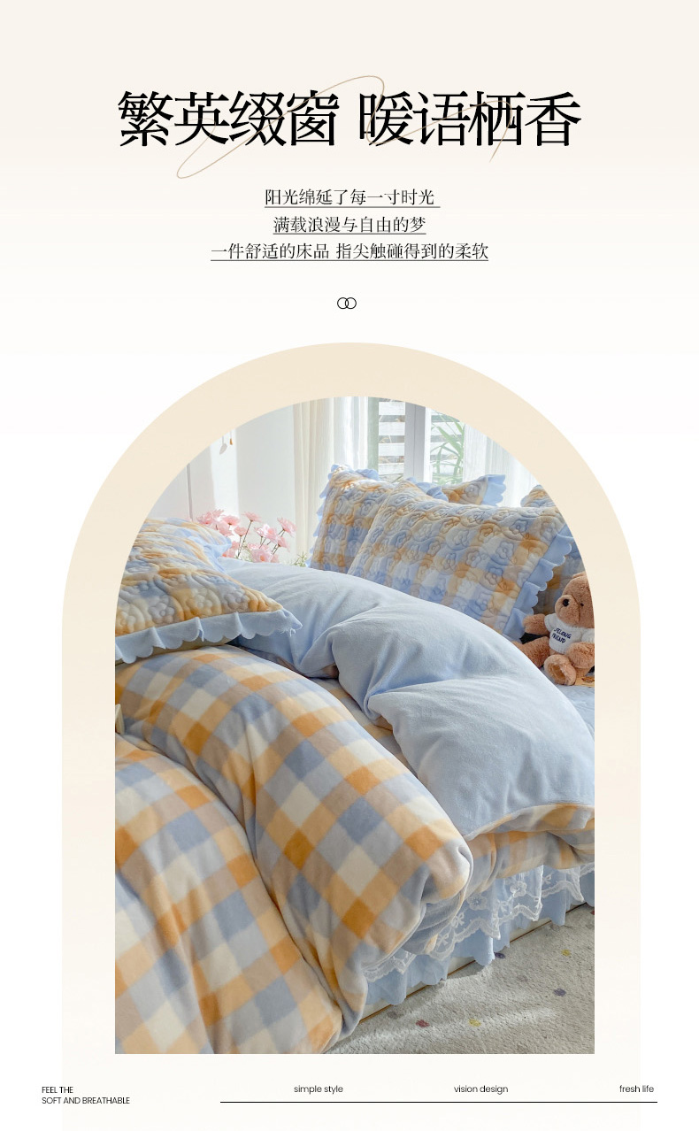 商品名称:(总)钰锦珀家纺 2025新款高克重牛奶绒蕾丝双层花边床盖四件套床盖三件套