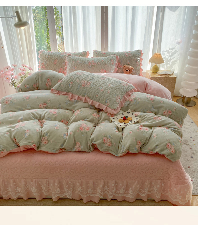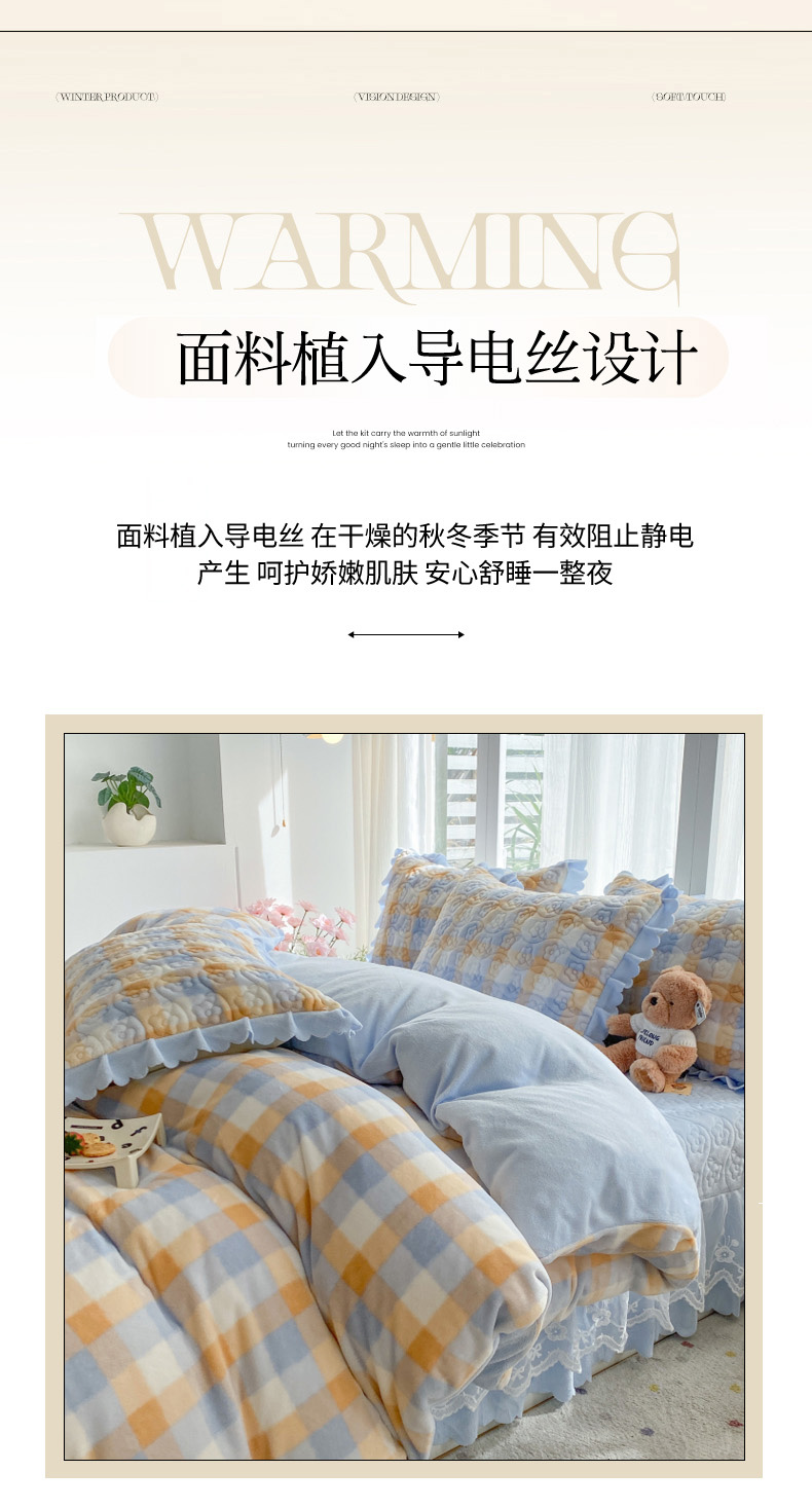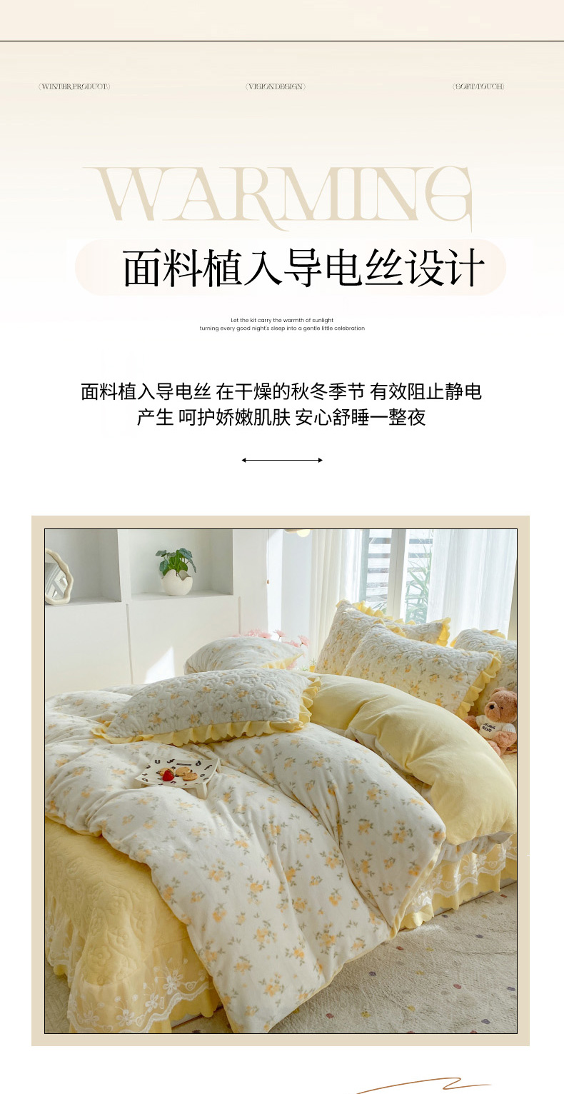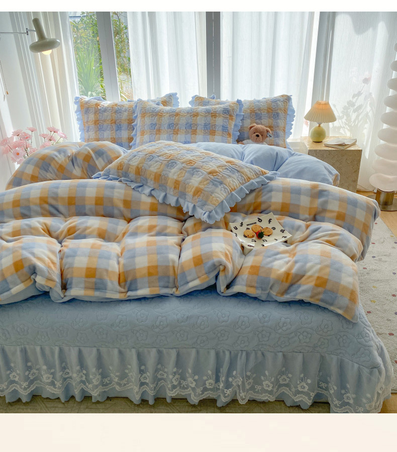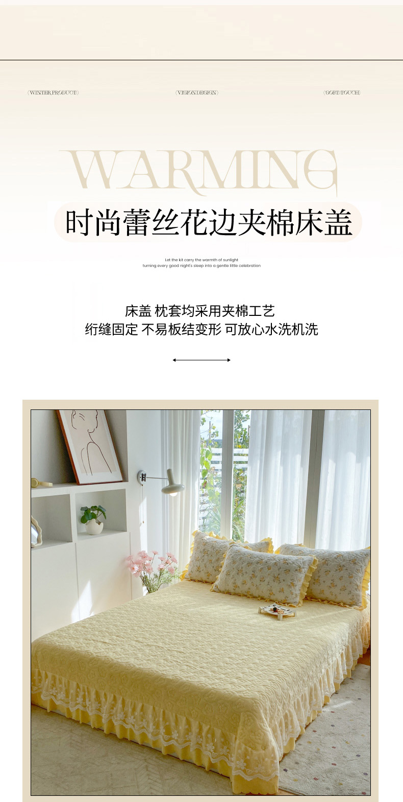 商品名称:(总)钰锦珀家纺 2025新款高克重牛奶绒蕾丝双层花边床盖四件套床盖三件套