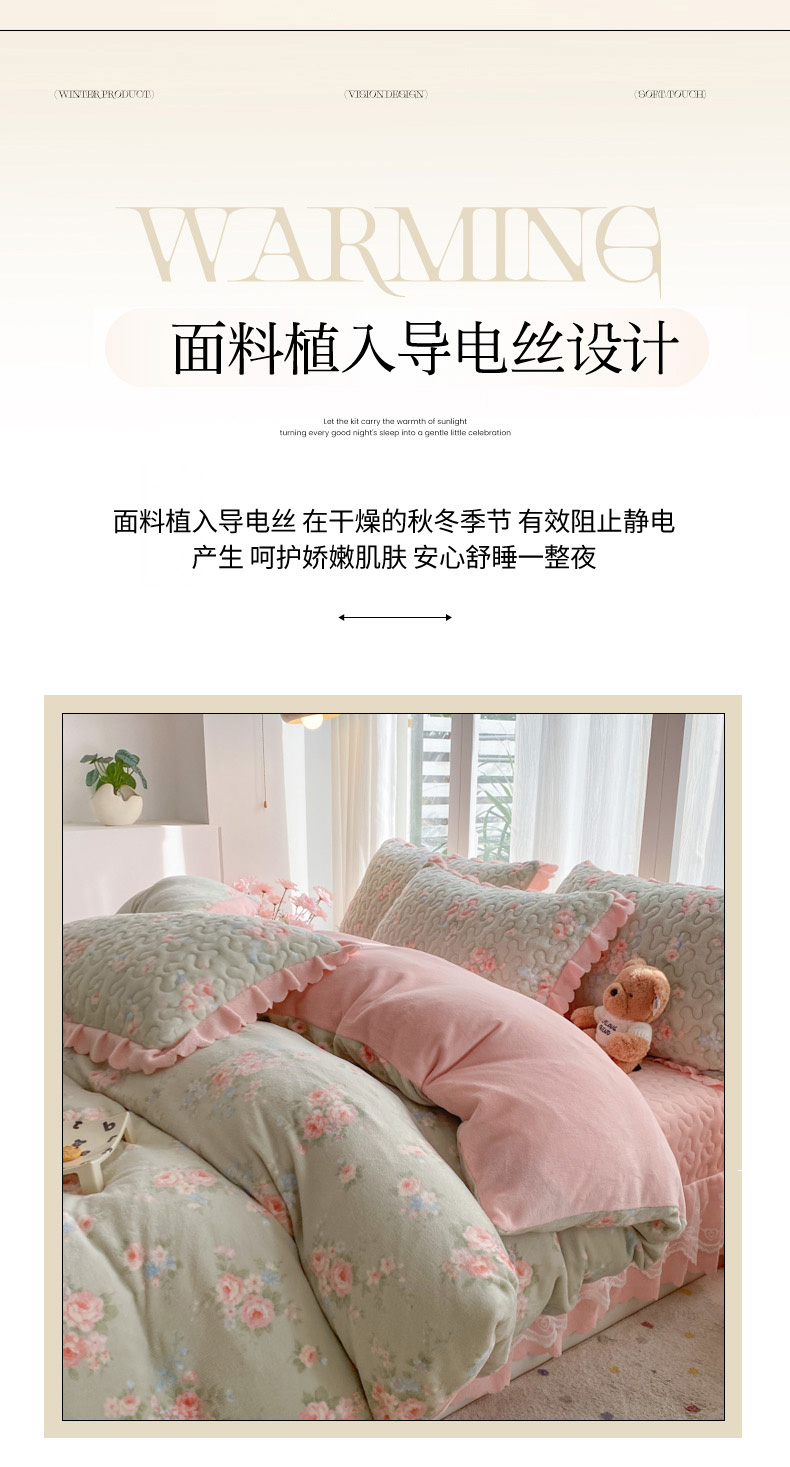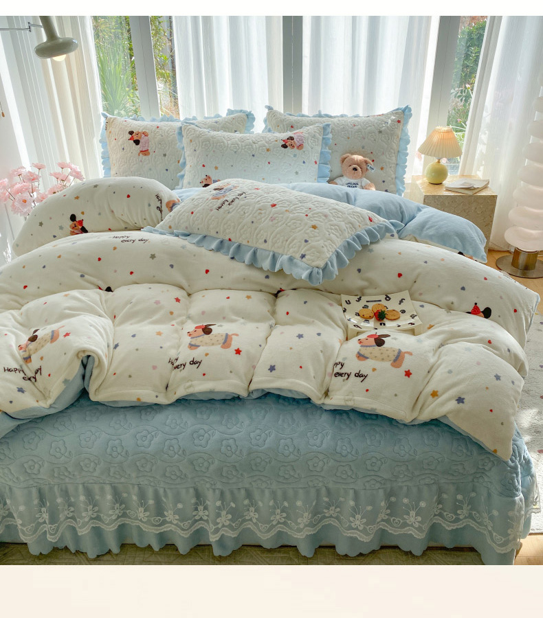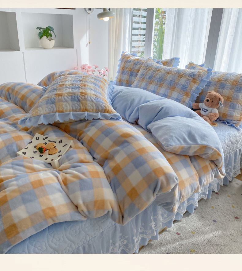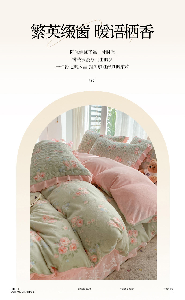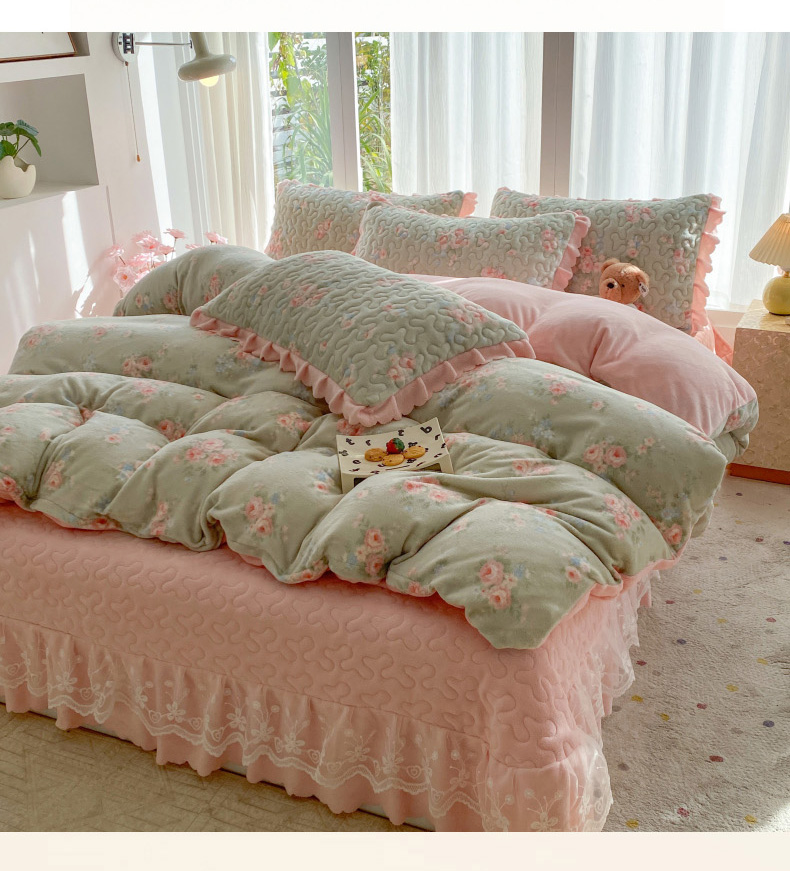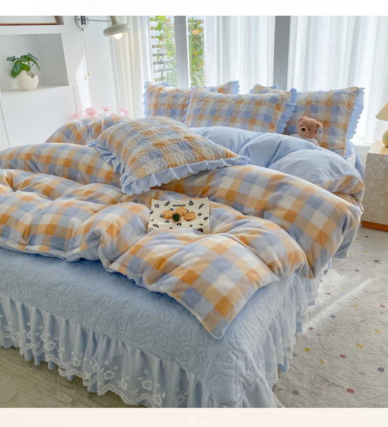 商品名称:(总)钰锦珀家纺 2025新款高克重牛奶绒蕾丝双层花边床盖四件套床盖三件套