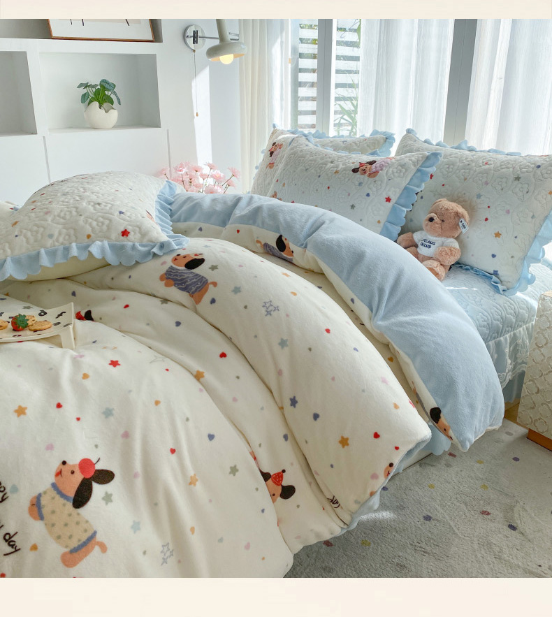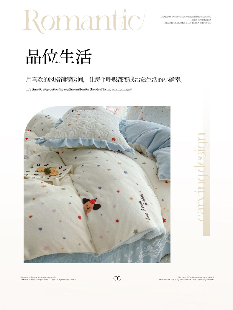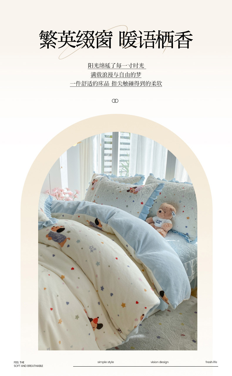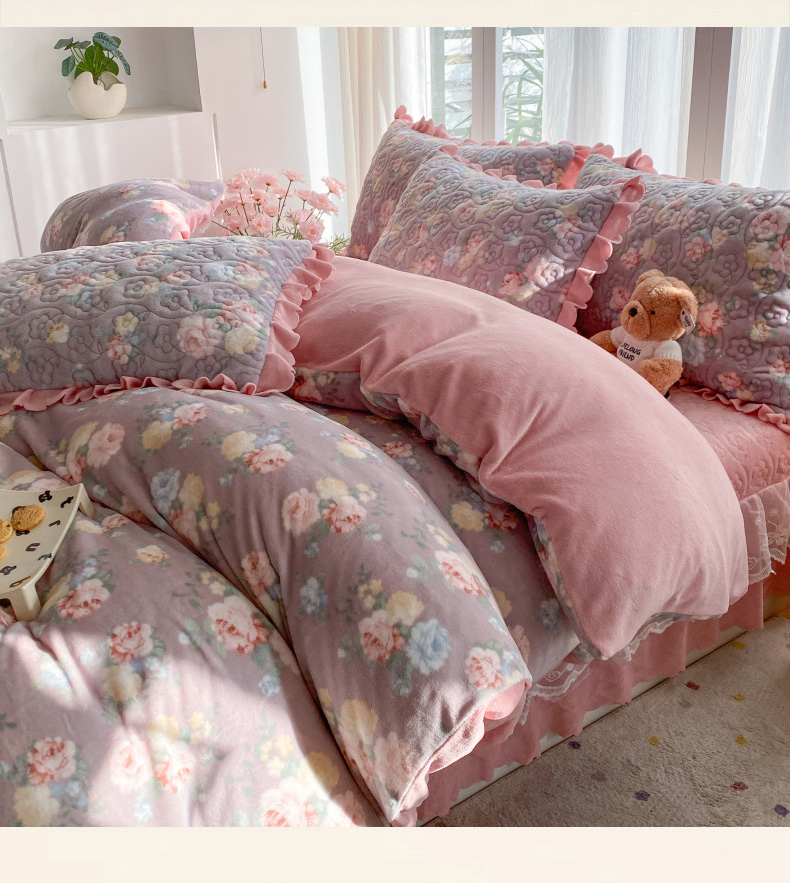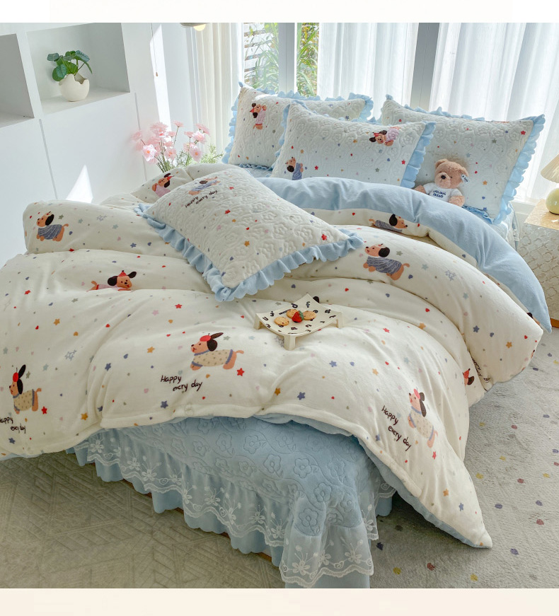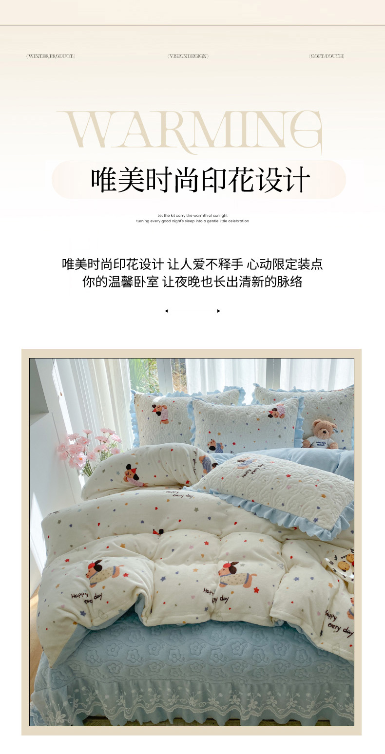 商品名称:(总)钰锦珀家纺 2025新款高克重牛奶绒蕾丝双层花边床盖四件套床盖三件套