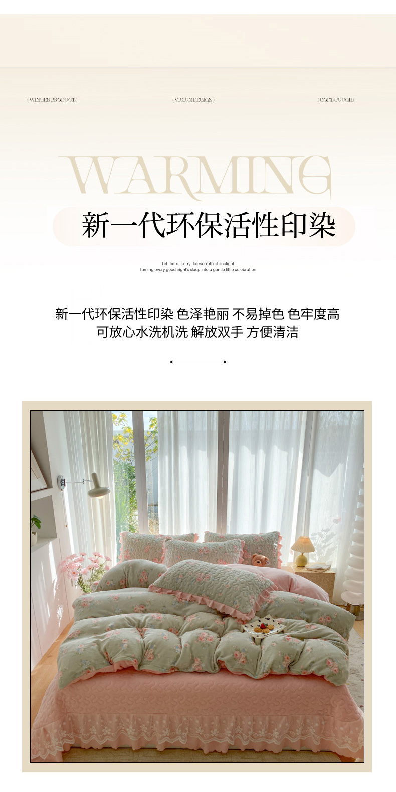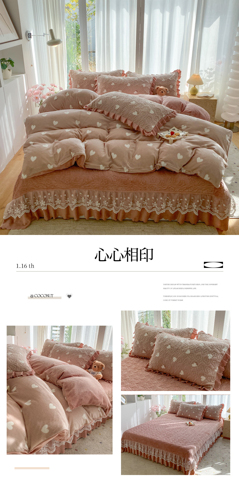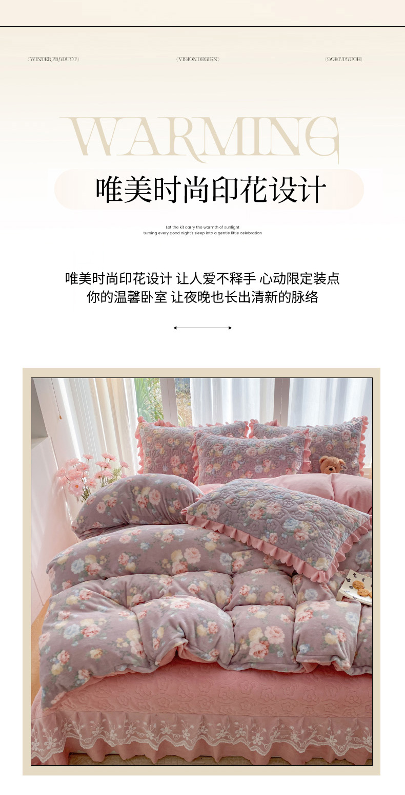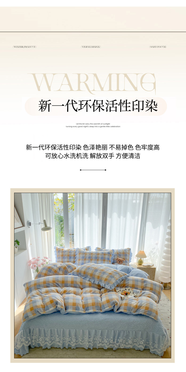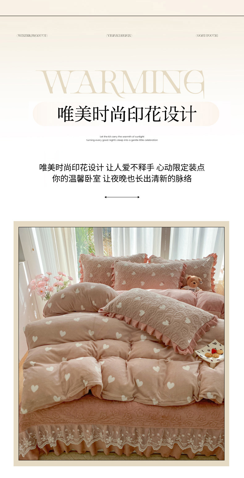 (总)钰锦珀家纺 2025新款高克重牛奶绒蕾丝双层花边床盖四件套床盖三件套