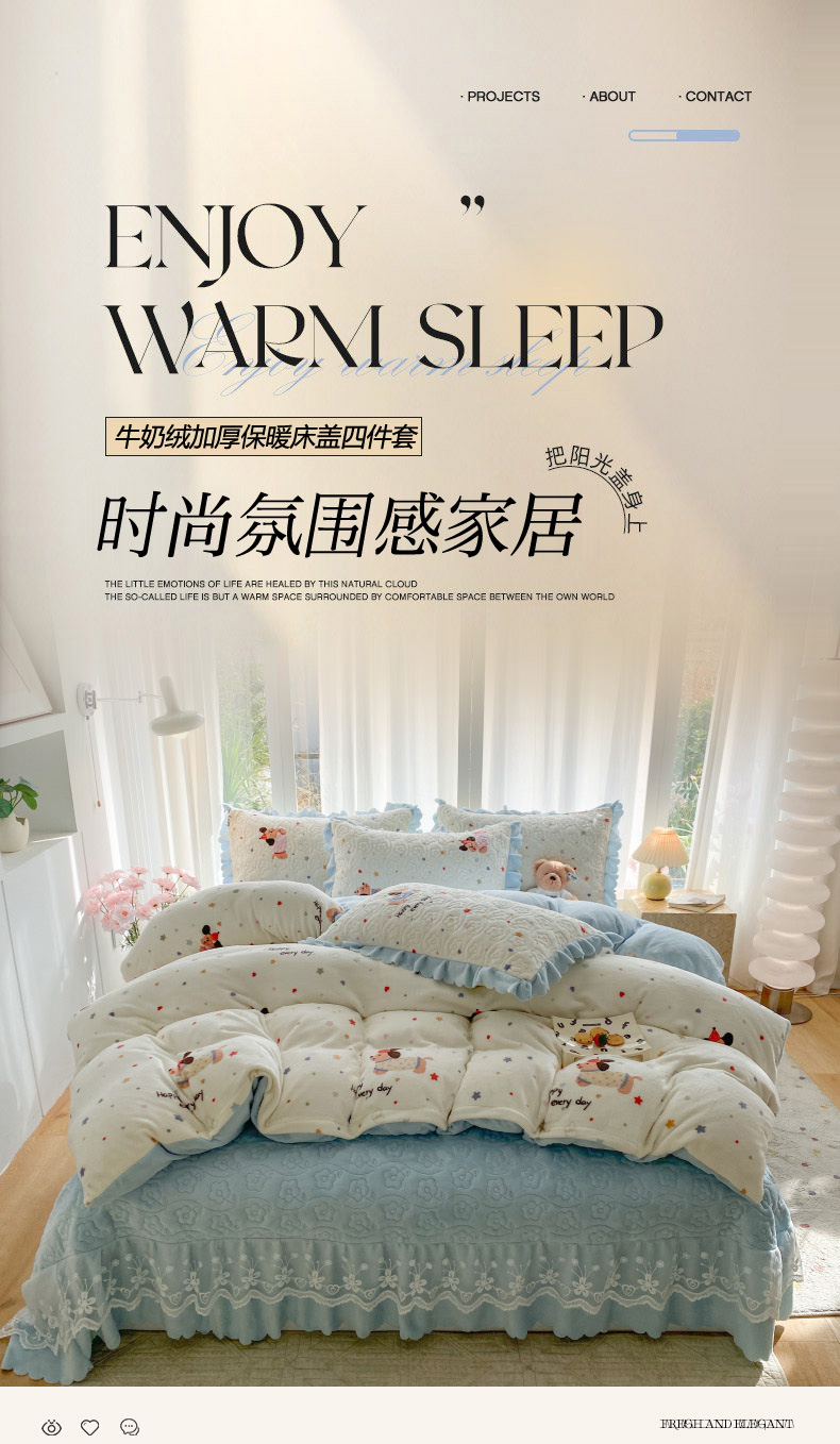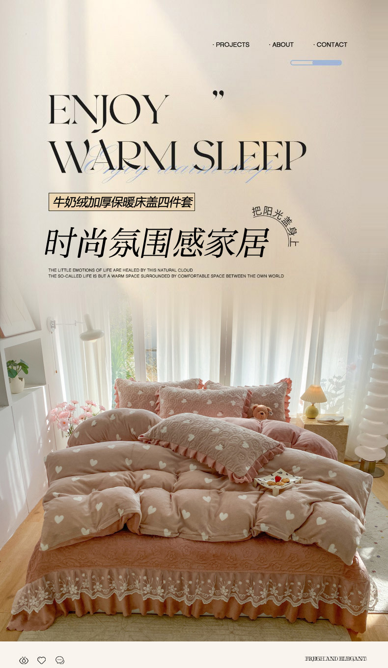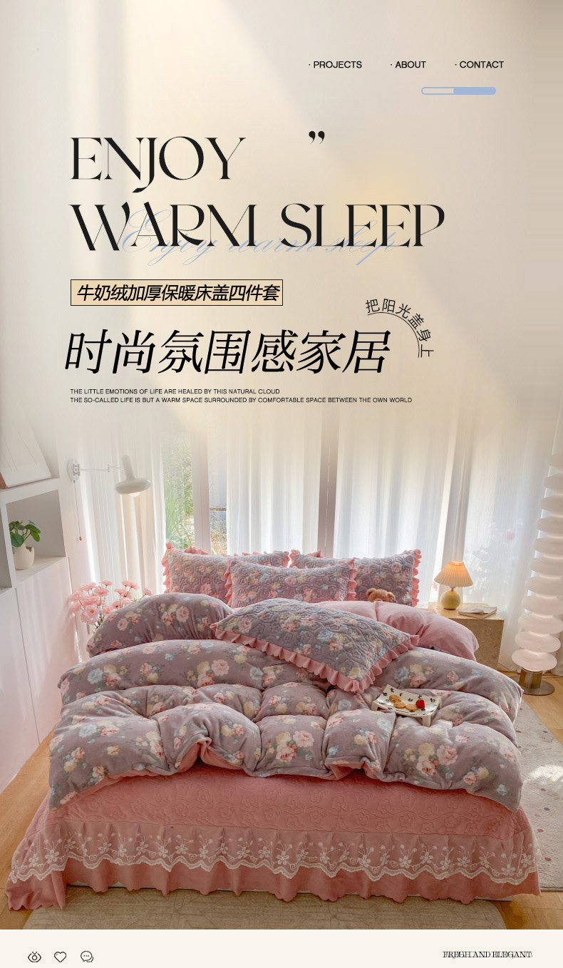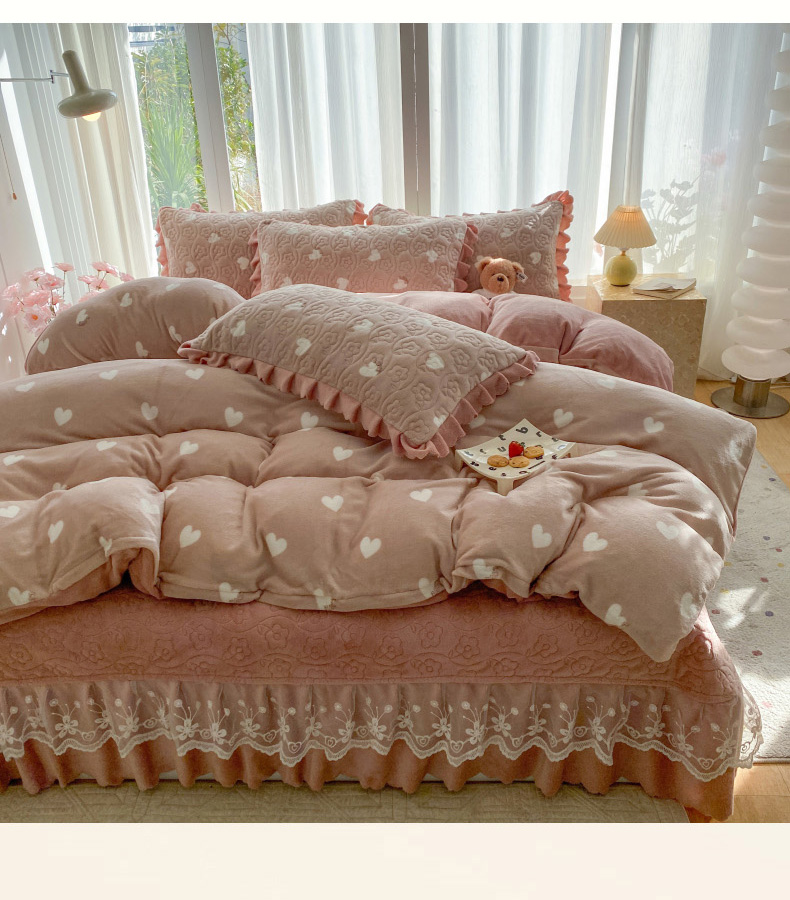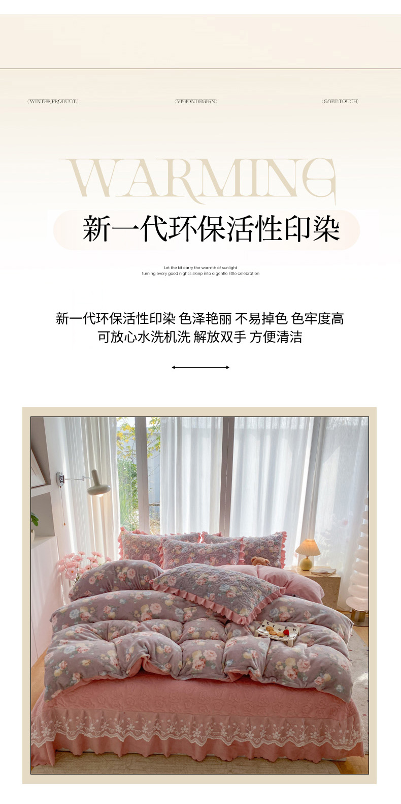 (总)钰锦珀家纺 2025新款高克重牛奶绒蕾丝双层花边床盖四件套床盖三件套