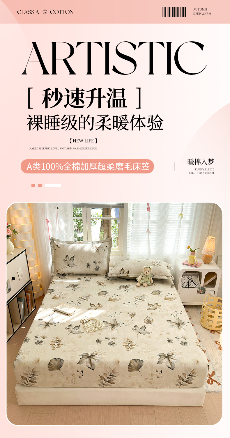 • 91家纺网 家纺一手货源 找家纺 拾物记 2025新款A类全棉纯棉加厚超柔磨毛单床笠(提供买家秀质检报告和实验视频) 衫叶