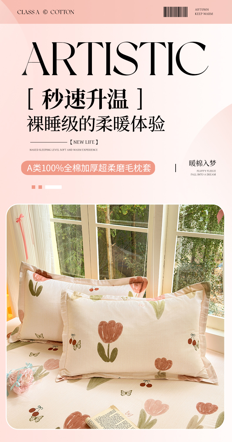 商品名称:拾物记 2025新款A类全棉纯棉加厚超柔磨毛单枕套(提供买家秀质检报告和实验视频) 蝴蝶千颂-粉