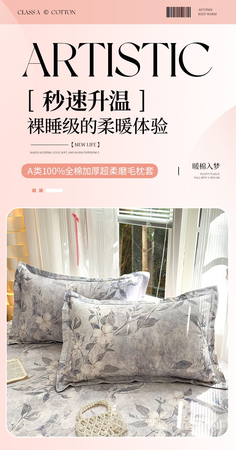 商品名称:拾物记 2025新款A类全棉纯棉加厚超柔磨毛单枕套(提供买家秀质检报告和实验视频) 琼枝