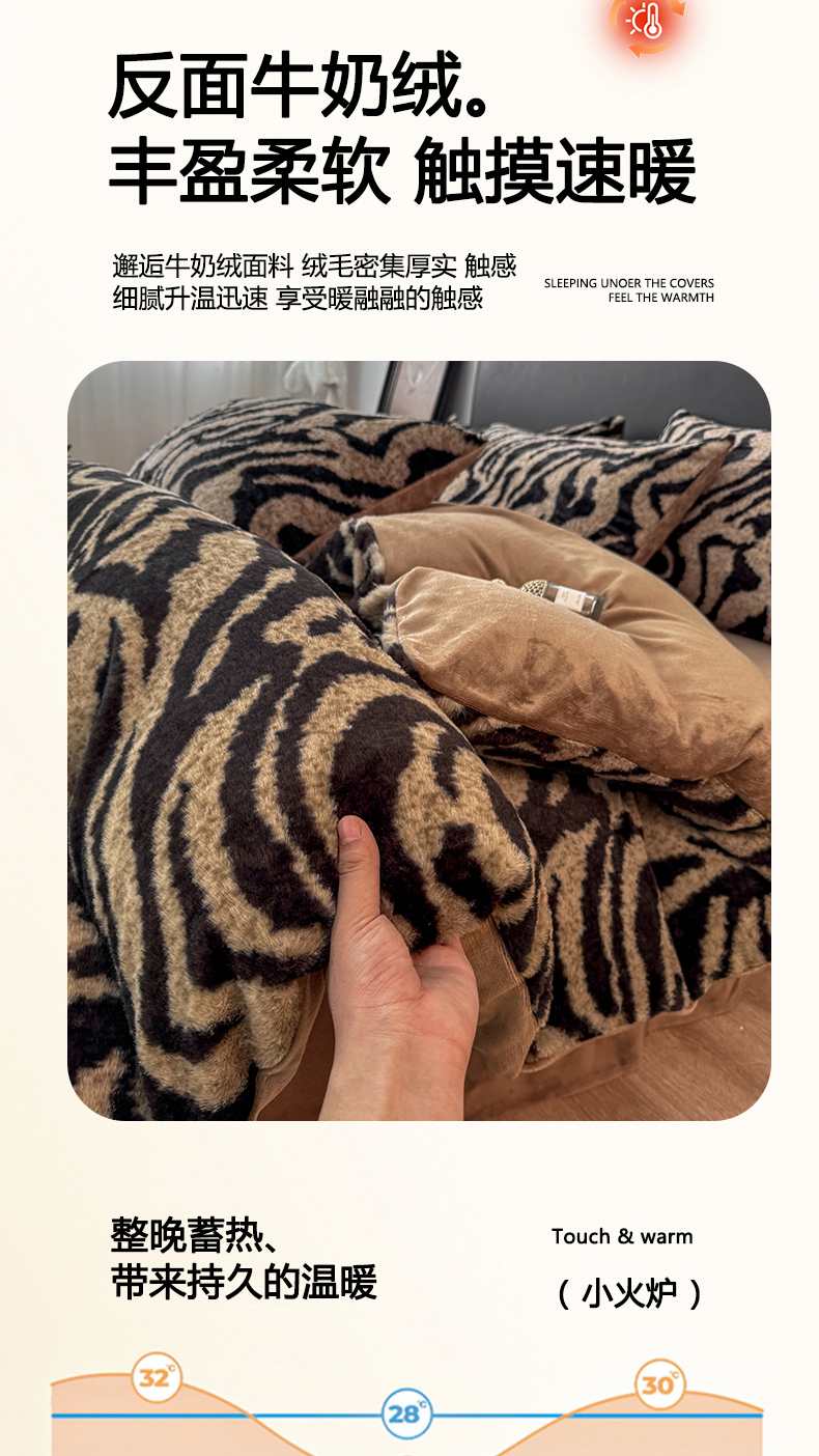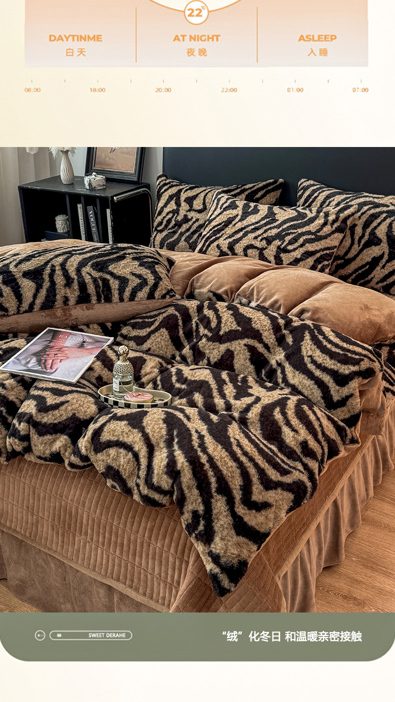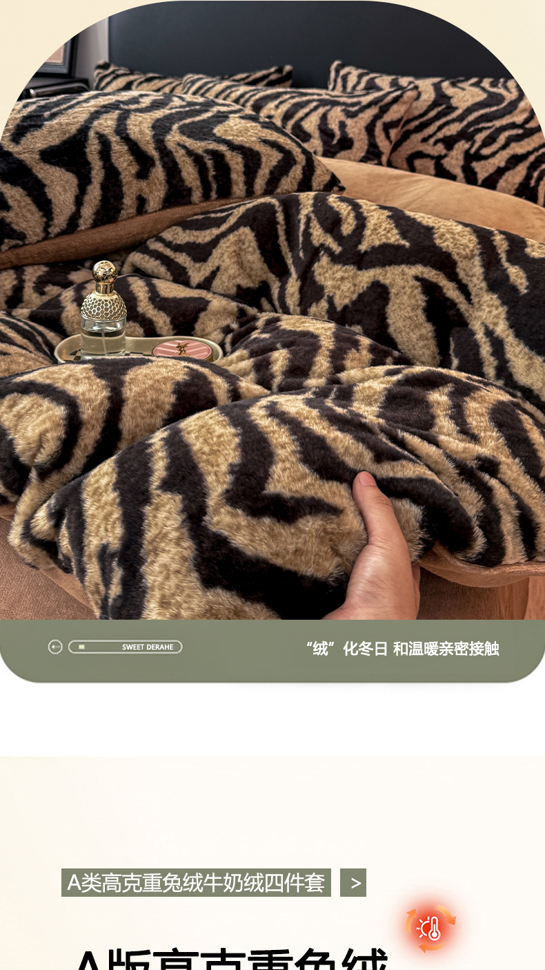 当前位置: 91家纺网 > 商品网购 > 床品套件 > 四件套 > 牛奶绒四件套 > 乐窝家纺仓储 2025新款【8斤重】轻奢复古高克重美拉德兔兔绒牛奶绒床单款床笠款床盖款四件套单床单单被套枕套(日发50套优惠8元一套) 虎纹