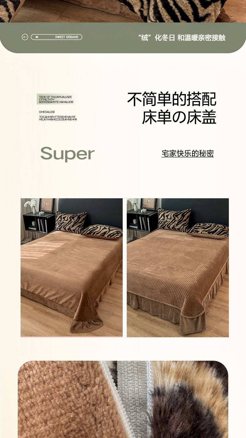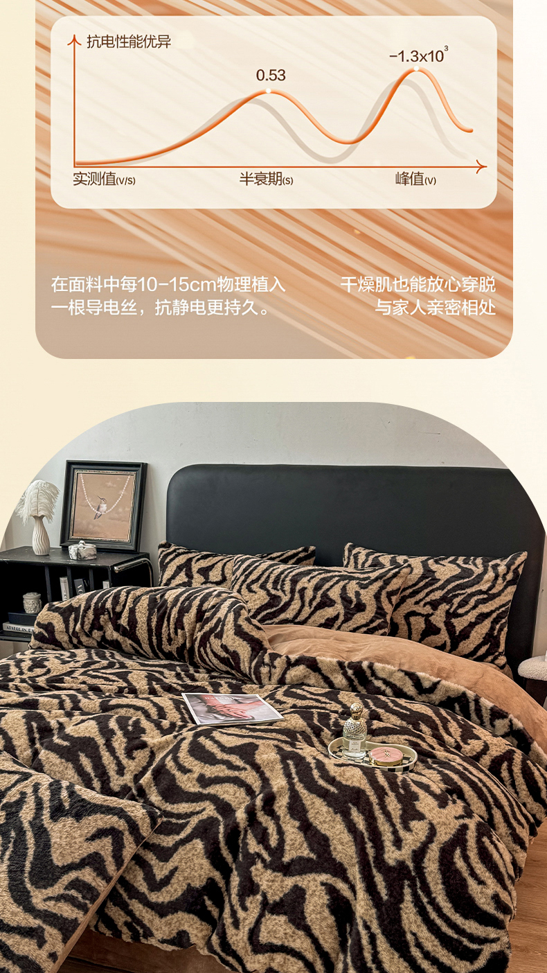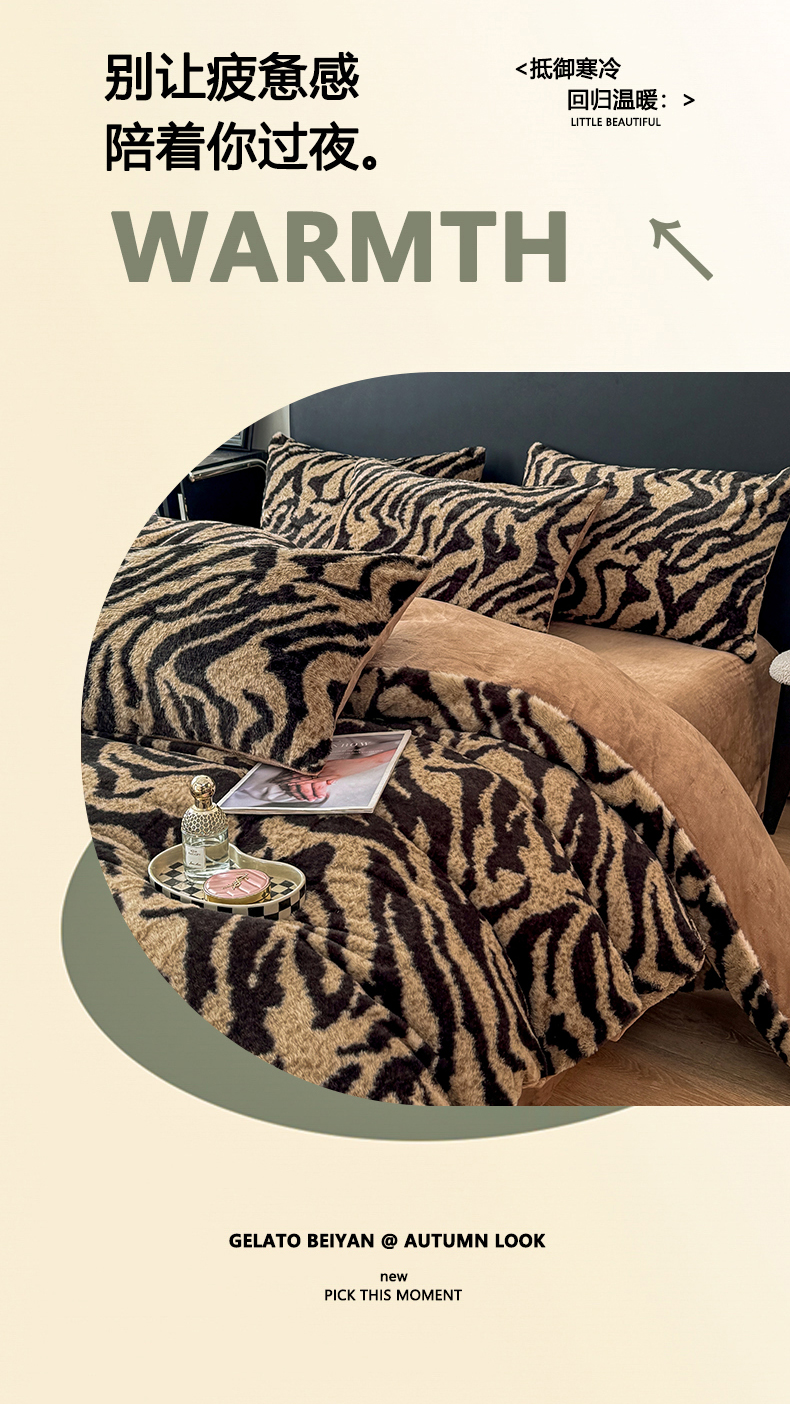 当前位置: 91家纺网 > 商品网购 > 床品套件 > 四件套 > 牛奶绒四件套 > 乐窝家纺仓储 2025新款【8斤重】轻奢复古高克重美拉德兔兔绒牛奶绒床单款床笠款床盖款四件套单床单单被套枕套(日发50套优惠8元一套) 虎纹