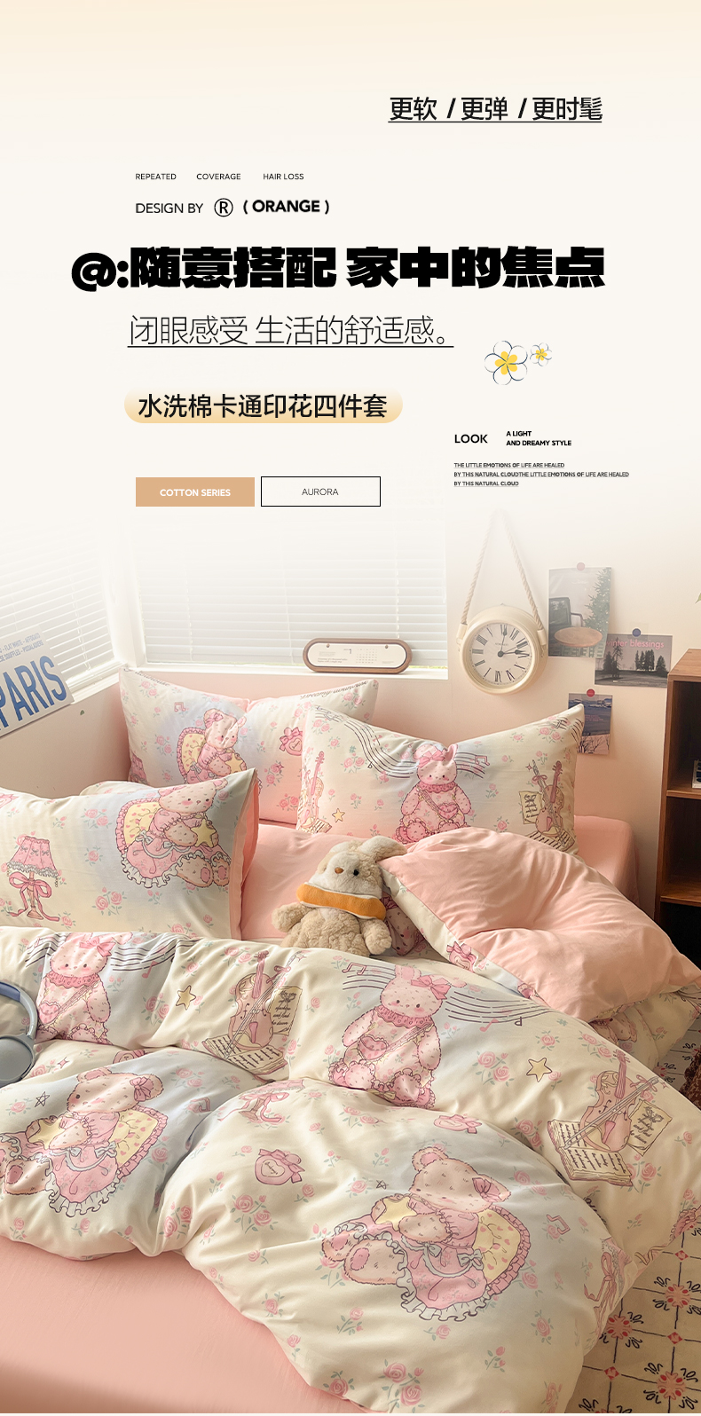 当前位置: 91家纺网 > 商品网购 > 床品套件 > 四件套 > 水洗棉四件套 > 优承佳生活馆 2026新款洛丽塔风水洗印花四件套学生三件套单被套系列 休闲小熊