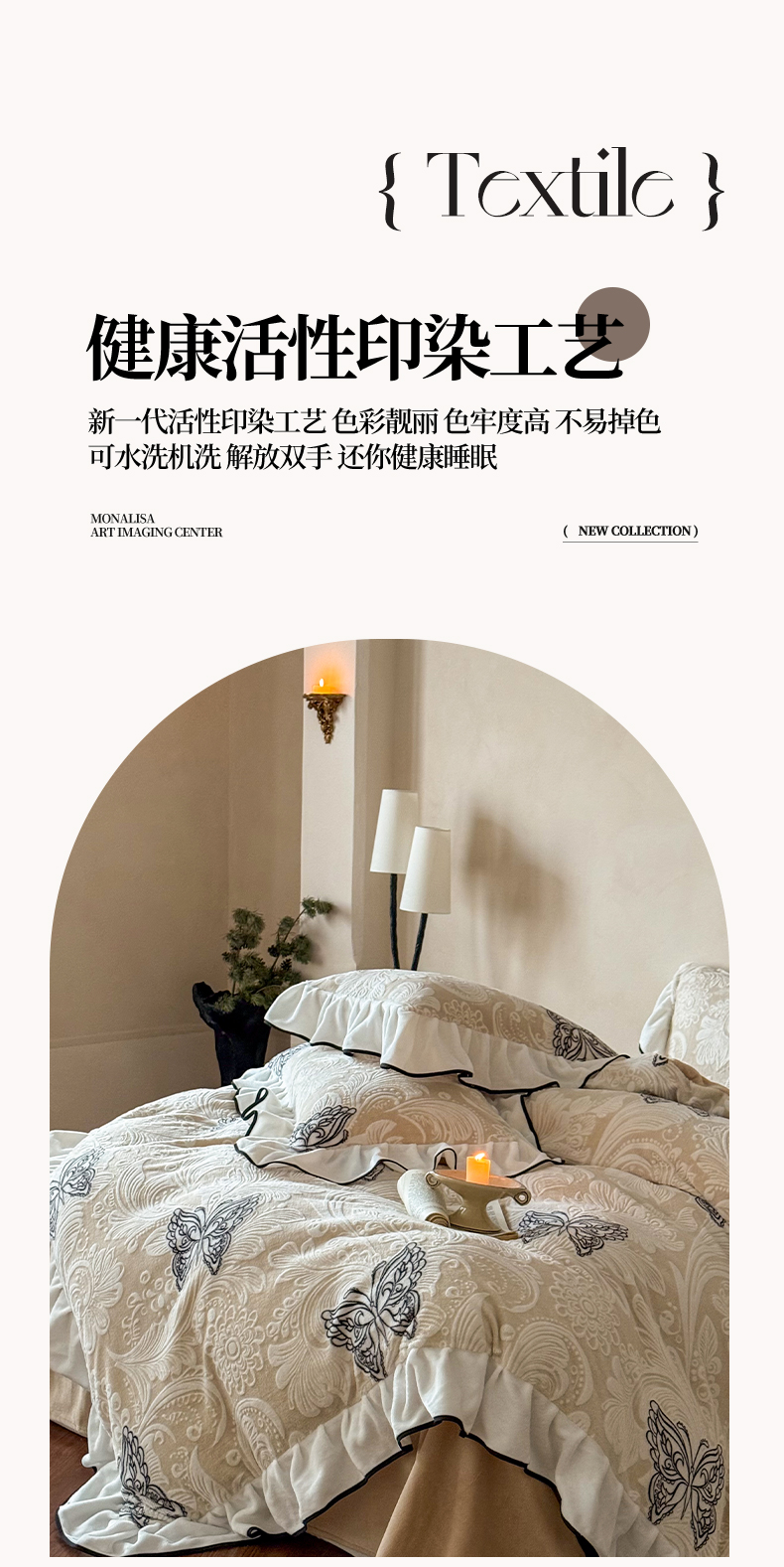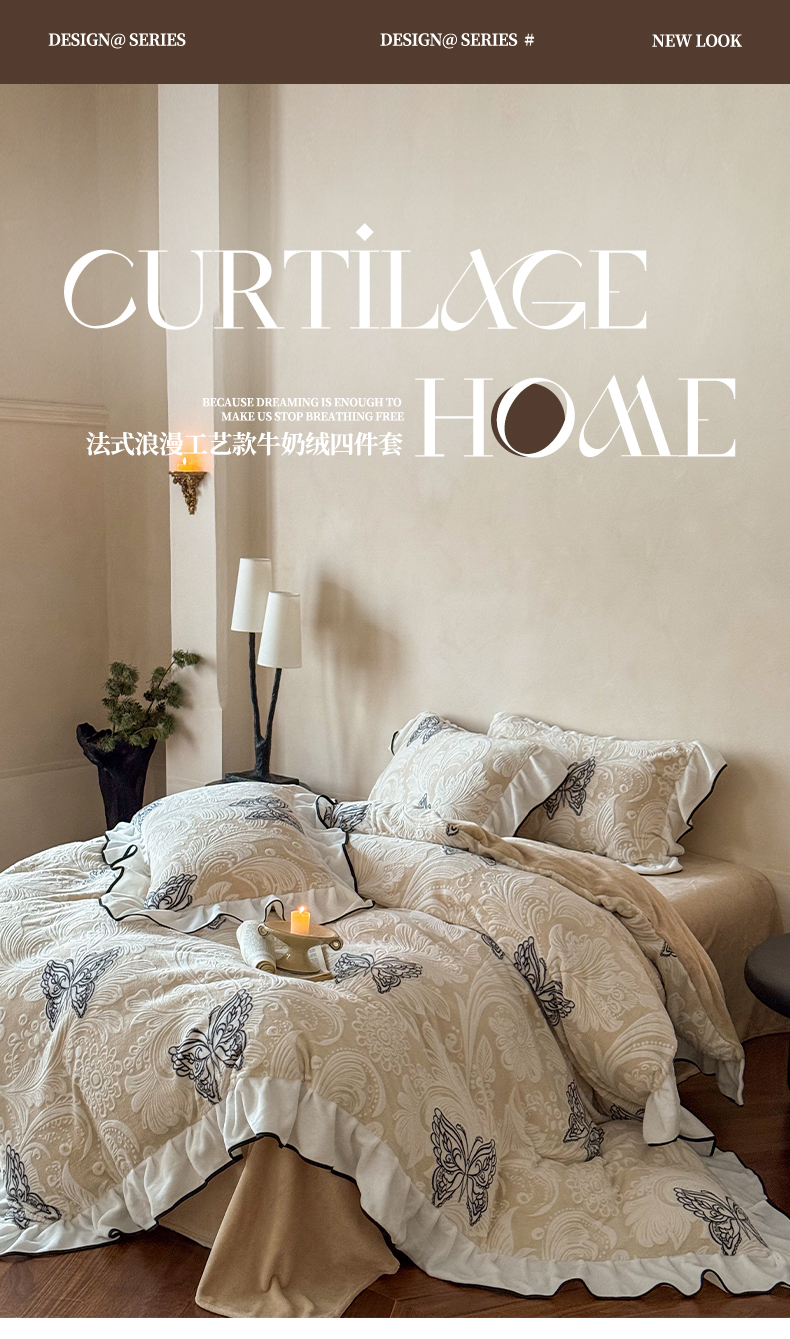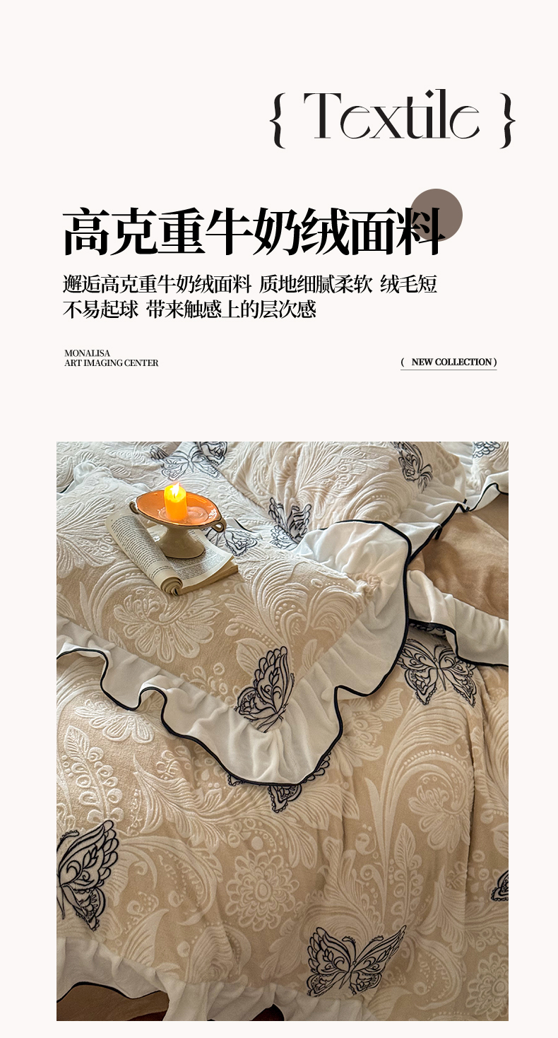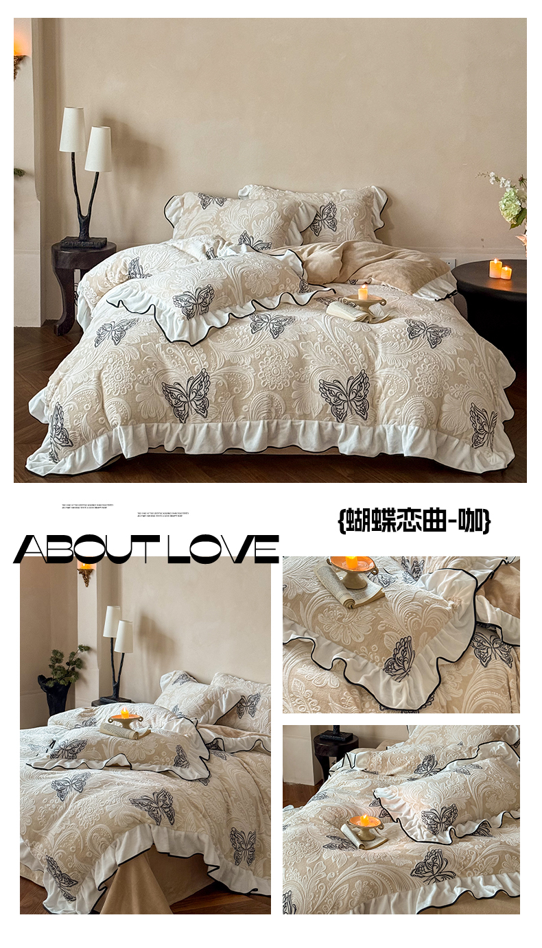 (总)凯儿家纺 2025新款全消光牛奶绒法式公主风花边工艺款四件套-蝴蝶恋曲