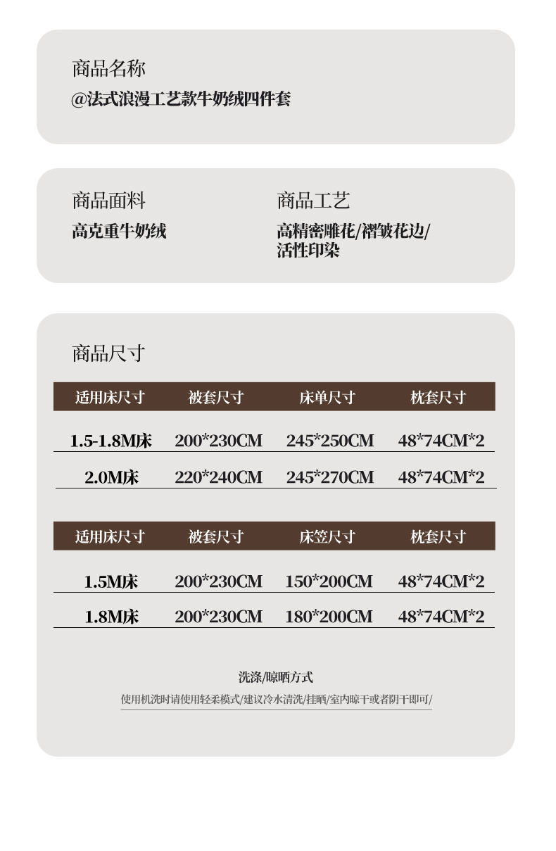 (总)凯儿家纺 2025新款全消光牛奶绒法式公主风花边工艺款四件套-赫本,赫本-粉,赫本-灰,赫本-米