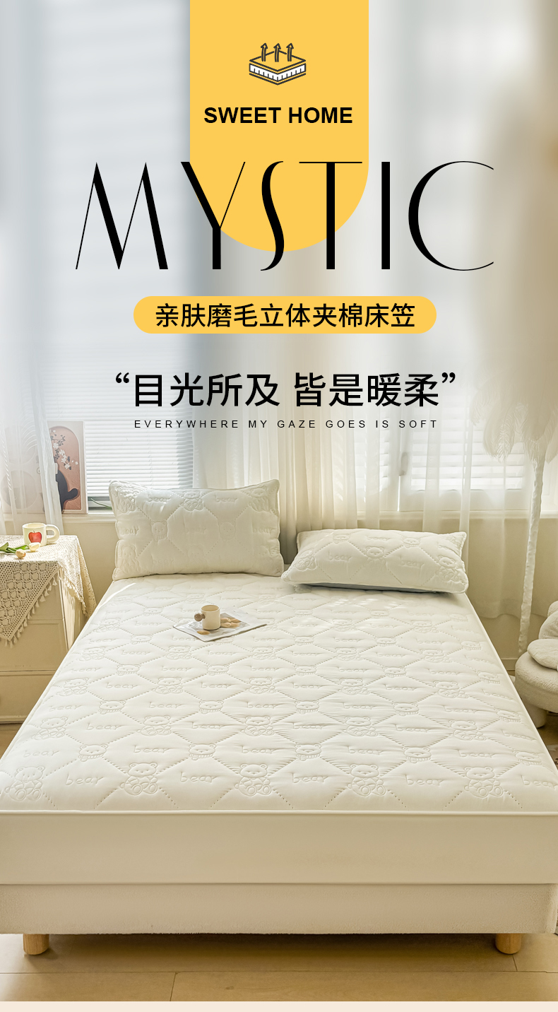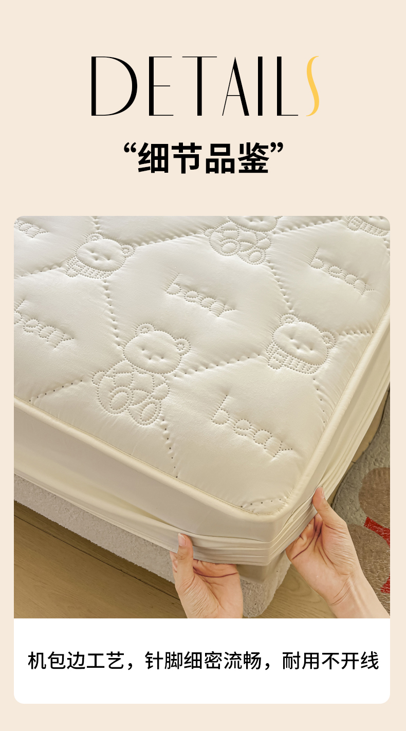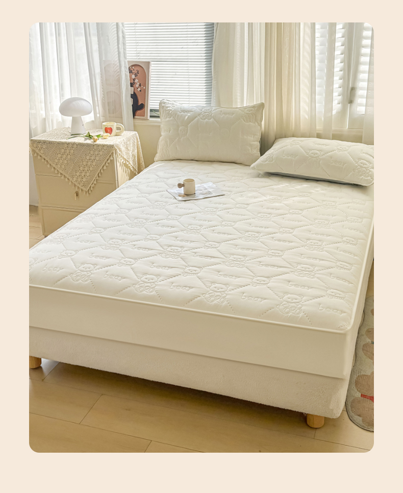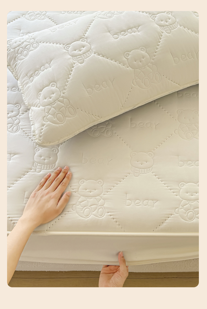 • 91家纺网 家纺一手货源 找家纺 LIFE.丽芙 2025新款磨毛单件超声波小熊夹棉床笠三件套 小熊夹棉床笠-奶昔白