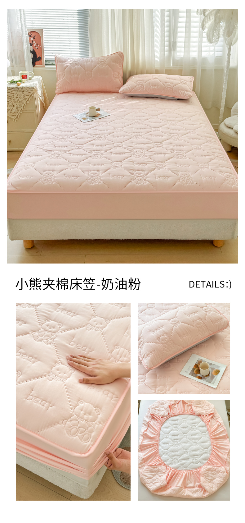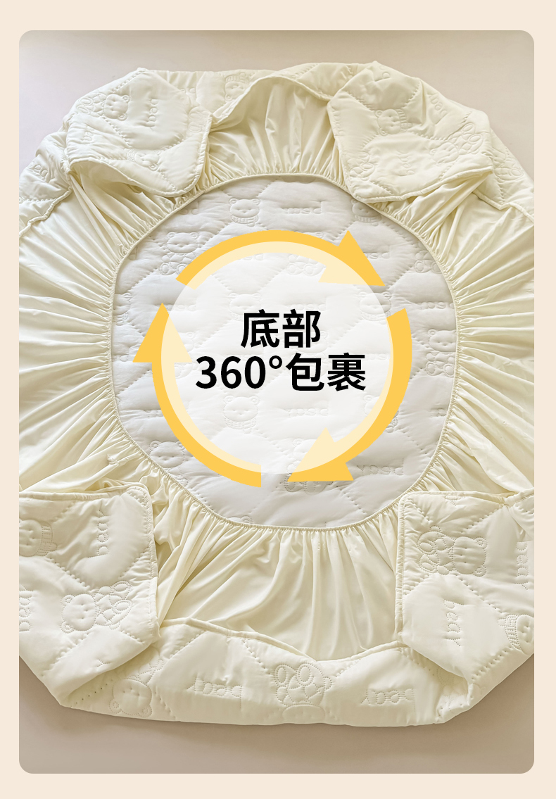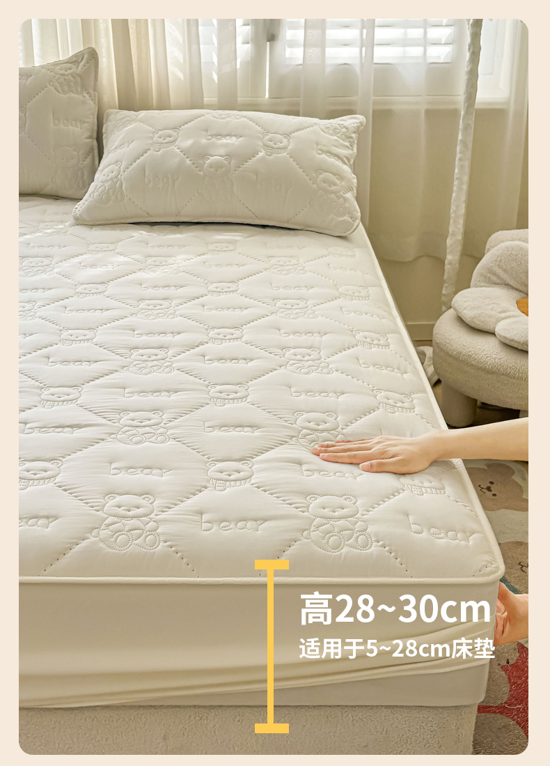 • 91家纺网 家纺一手货源 找家纺 LIFE.丽芙 2025新款磨毛单件超声波小熊夹棉床笠三件套 小熊夹棉床笠-奶昔白