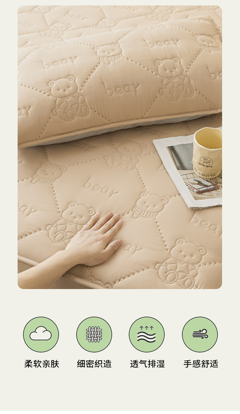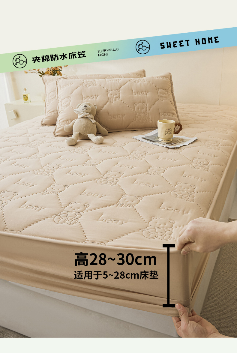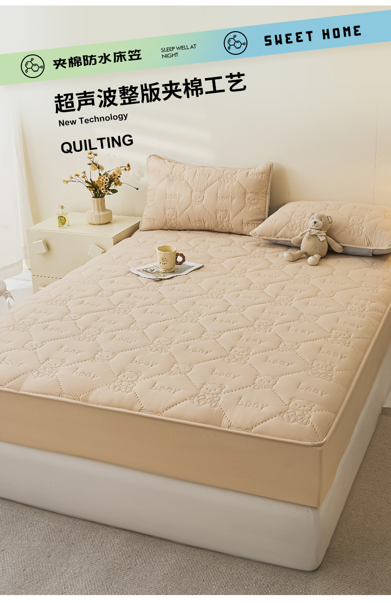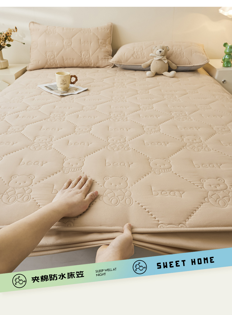 • 91家纺网 家纺一手货源 找家纺 LIFE.丽芙 2025新款磨毛单件超声波小熊夹棉防水床笠三件套 小熊防水夹棉床笠-奶茶