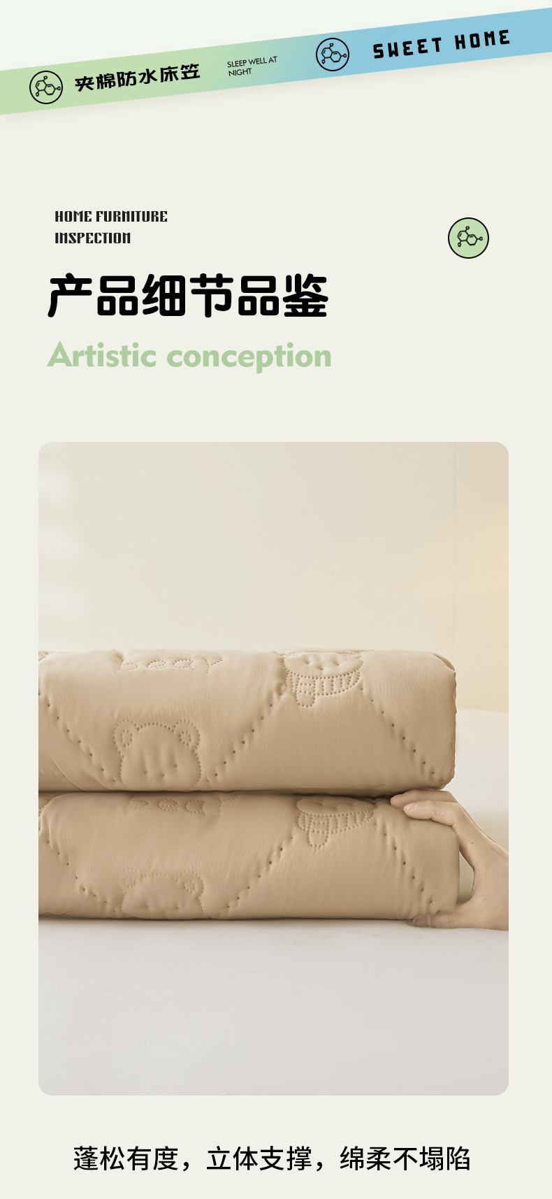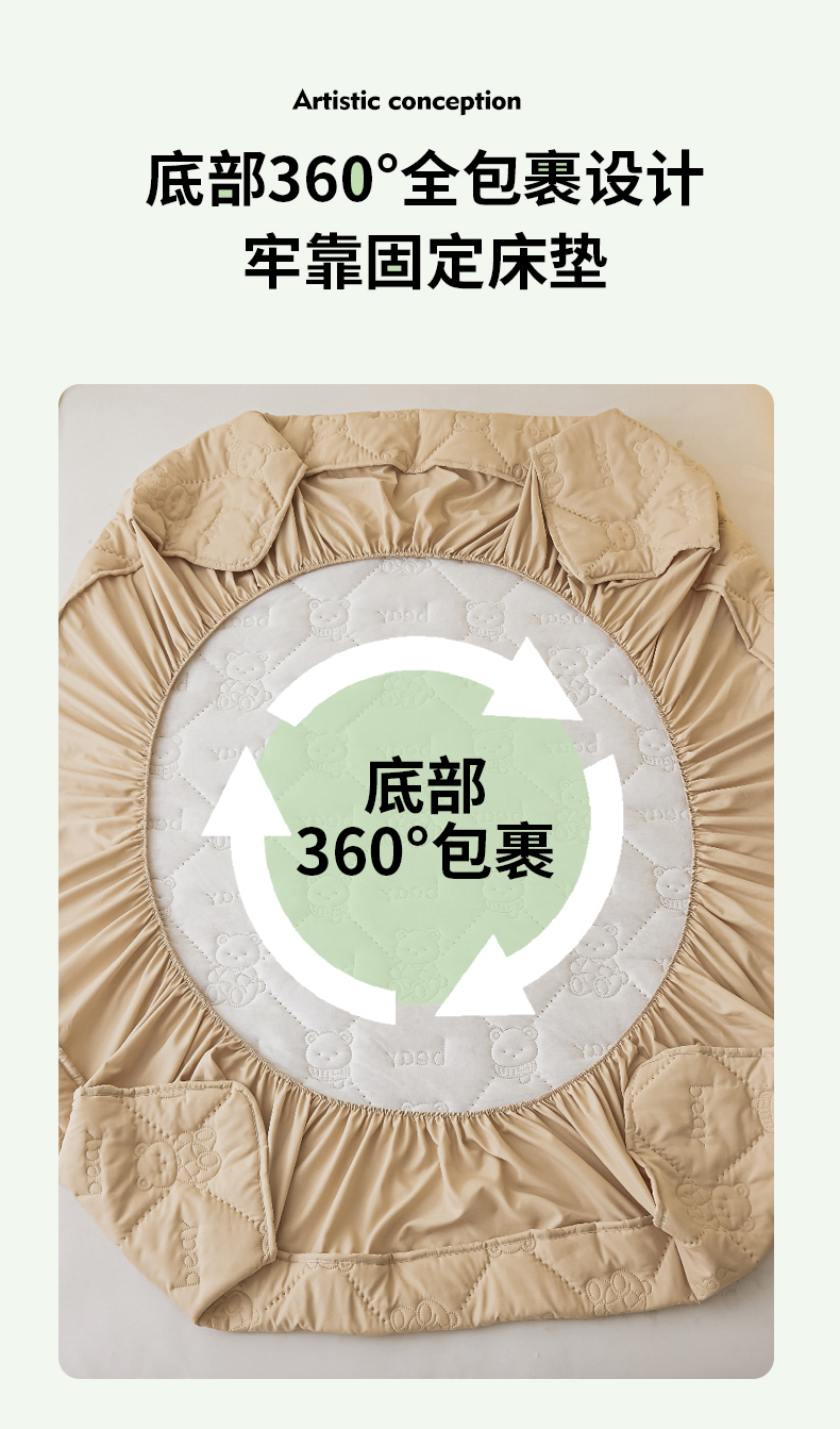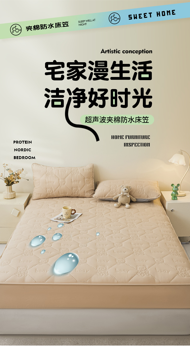 • 91家纺网 家纺一手货源 找家纺 LIFE.丽芙 2025新款磨毛单件超声波小熊夹棉防水床笠三件套 小熊防水夹棉床笠-奶茶