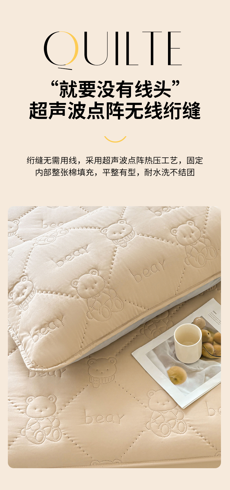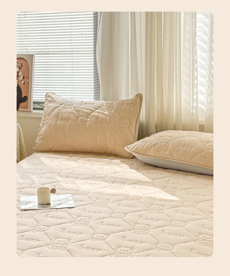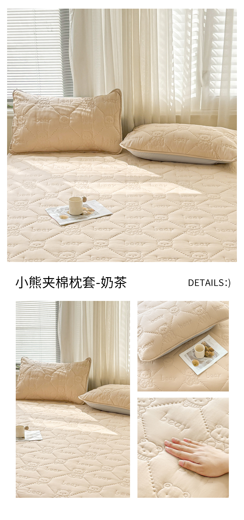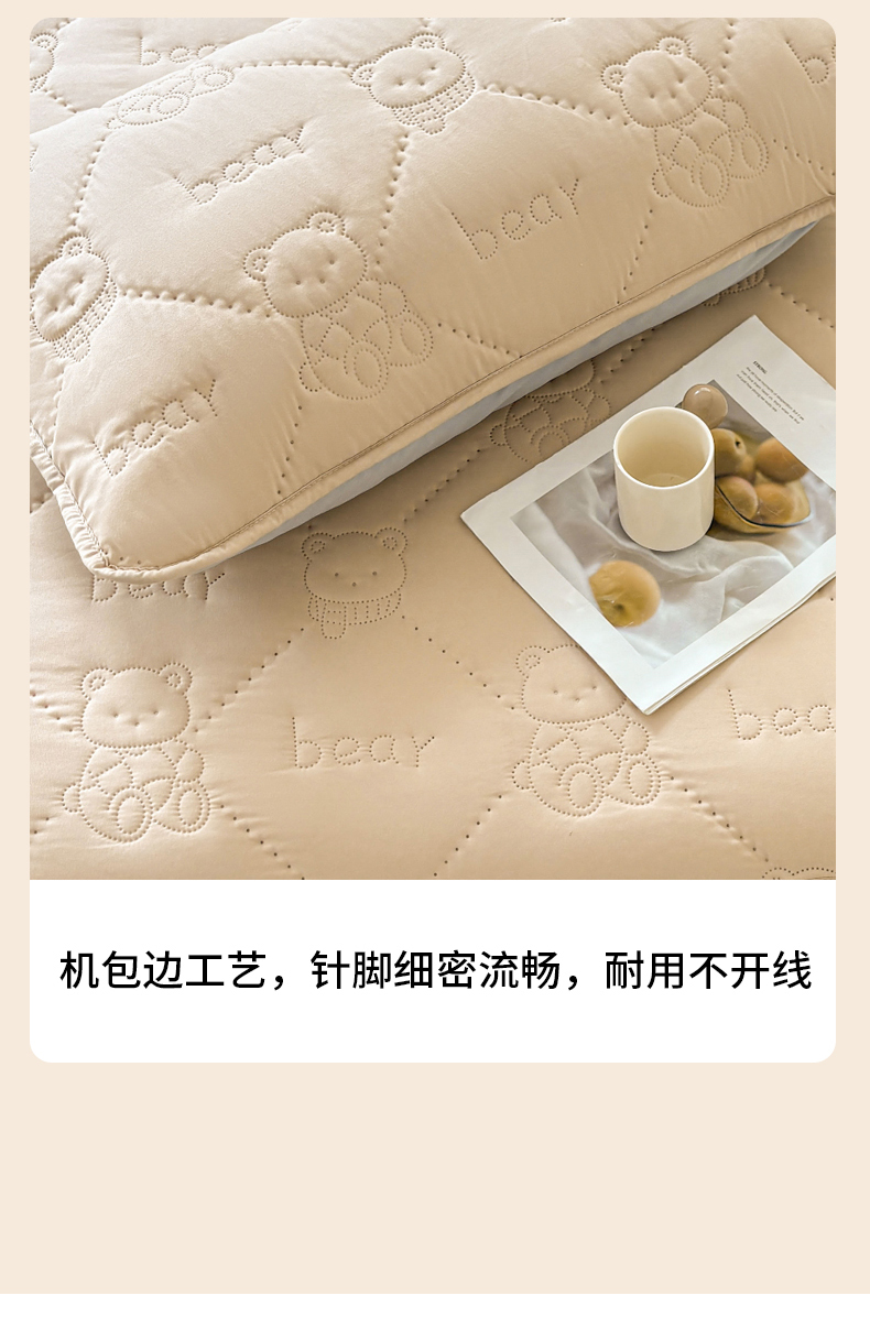 商品名称:LIFE.丽芙 2025新款磨毛超声波夹棉机包边枕套 小熊夹棉枕套-奶茶