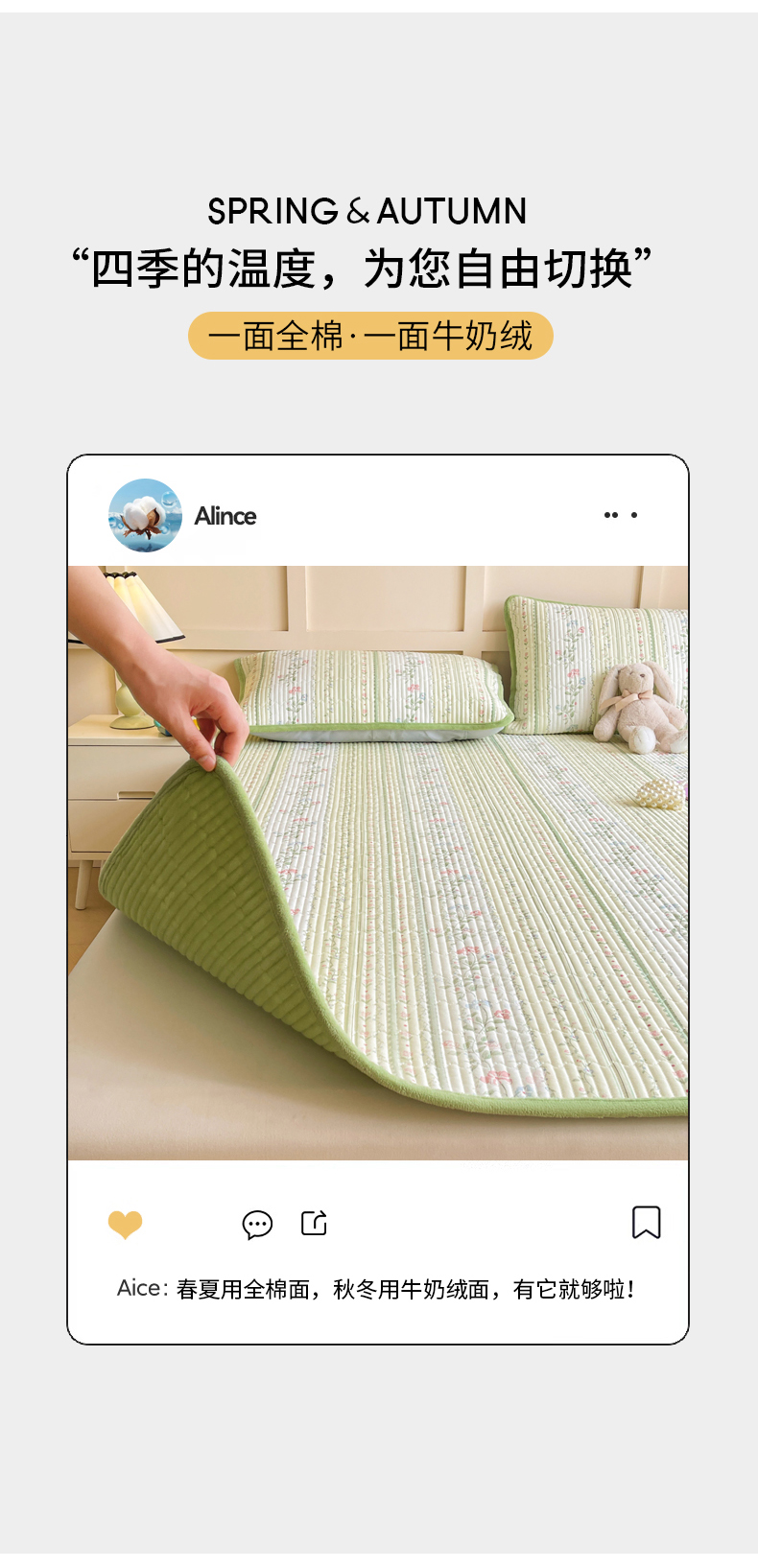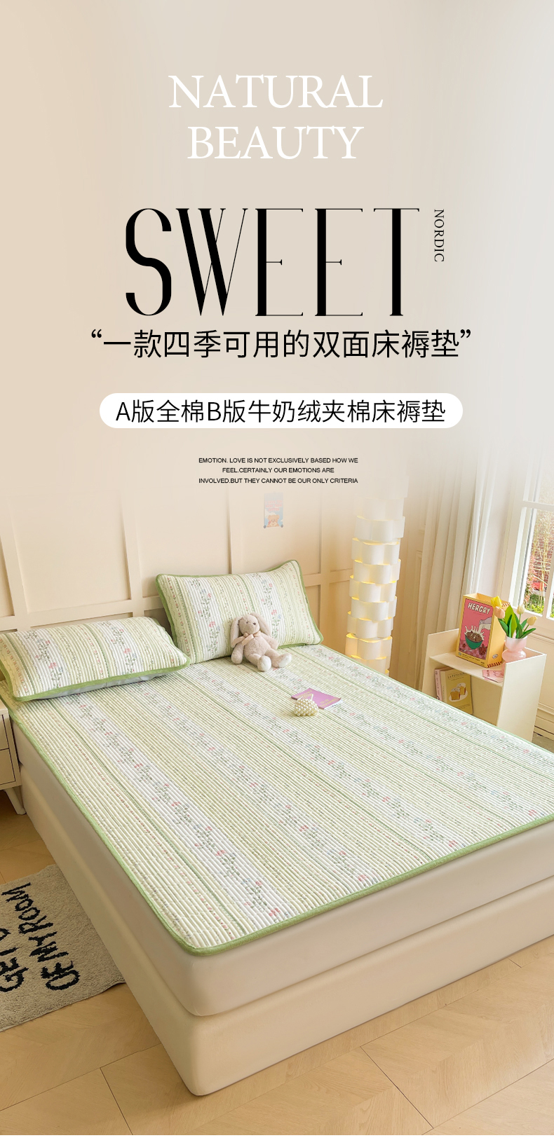 当前位置: 91家纺网 > 商品网购 > 床垫/床褥 > 普通床垫 > LIFE.丽芙 2025新款A类四季可用A版全棉数码印花B版牛奶绒单件夹棉床褥垫三件套 床褥垫-曼琳-绿
