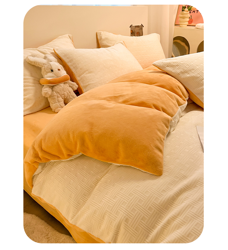 当前位置: 91家纺网 > 商品网购 > 床品套件 > 四件套 > 牛奶绒四件套 > 如一 2025年3D立体雕花牛奶绒四件套 编织纹-白橘