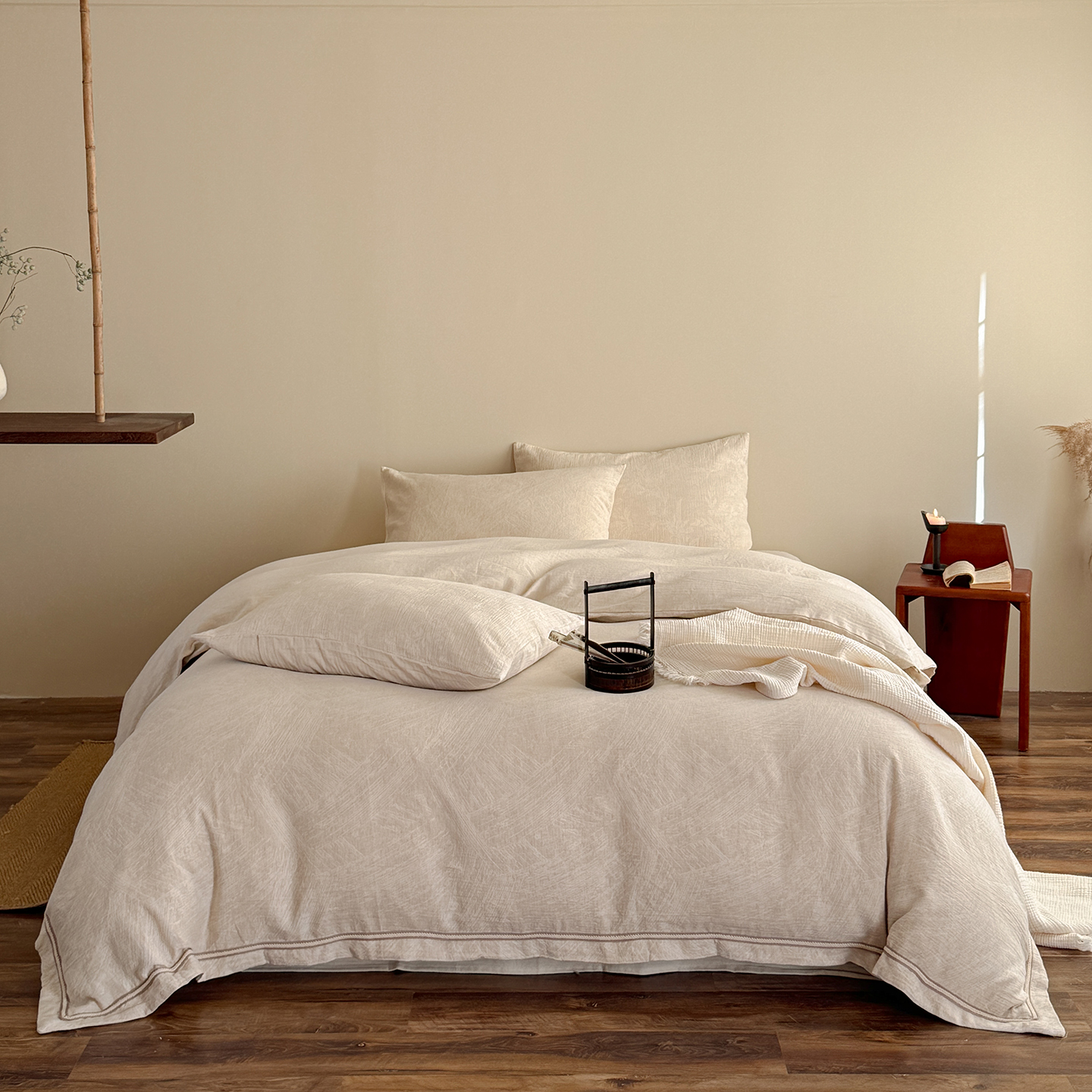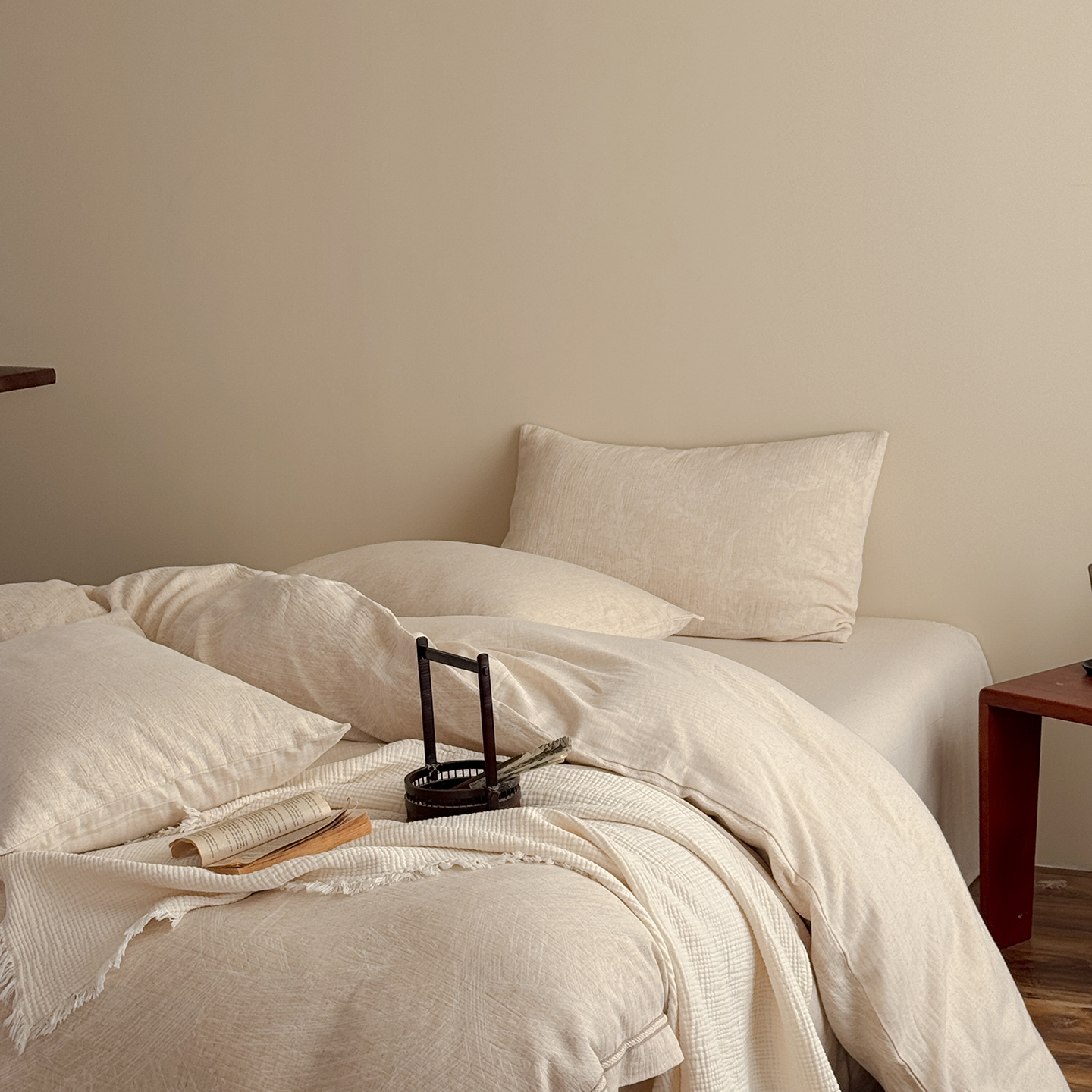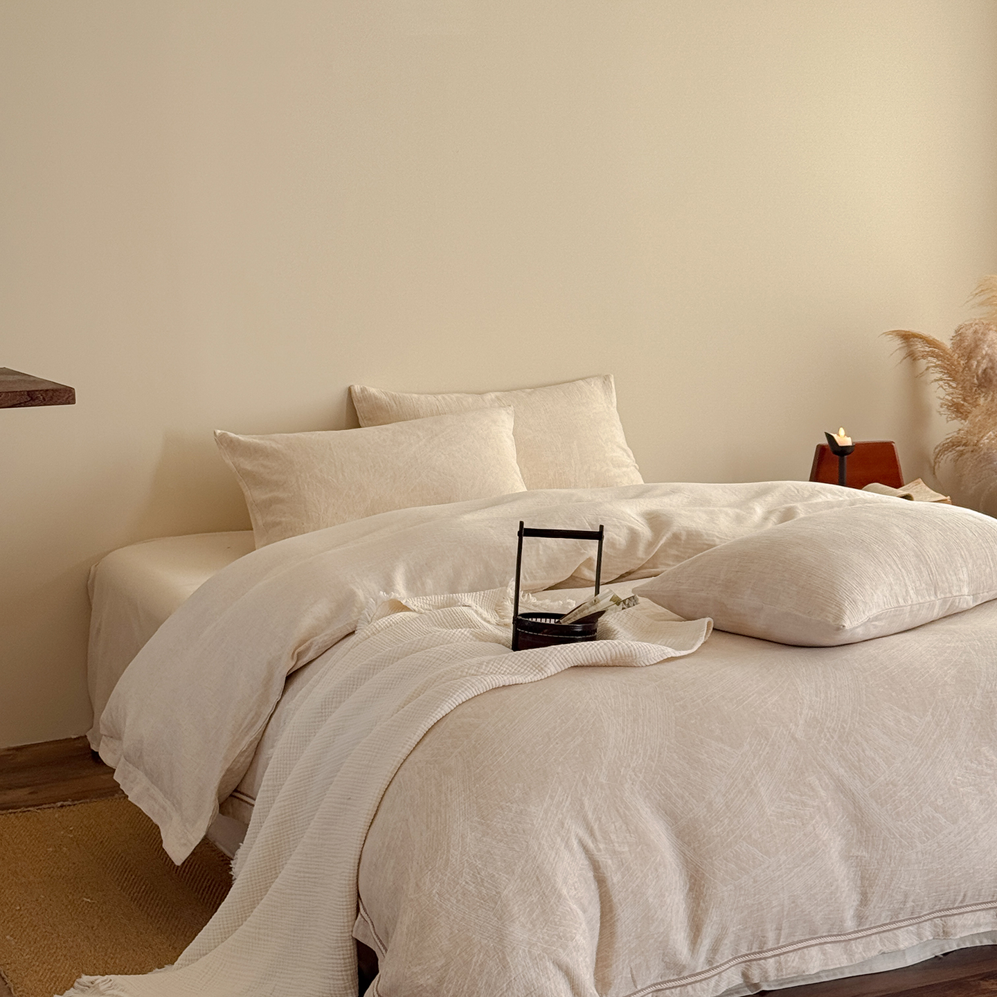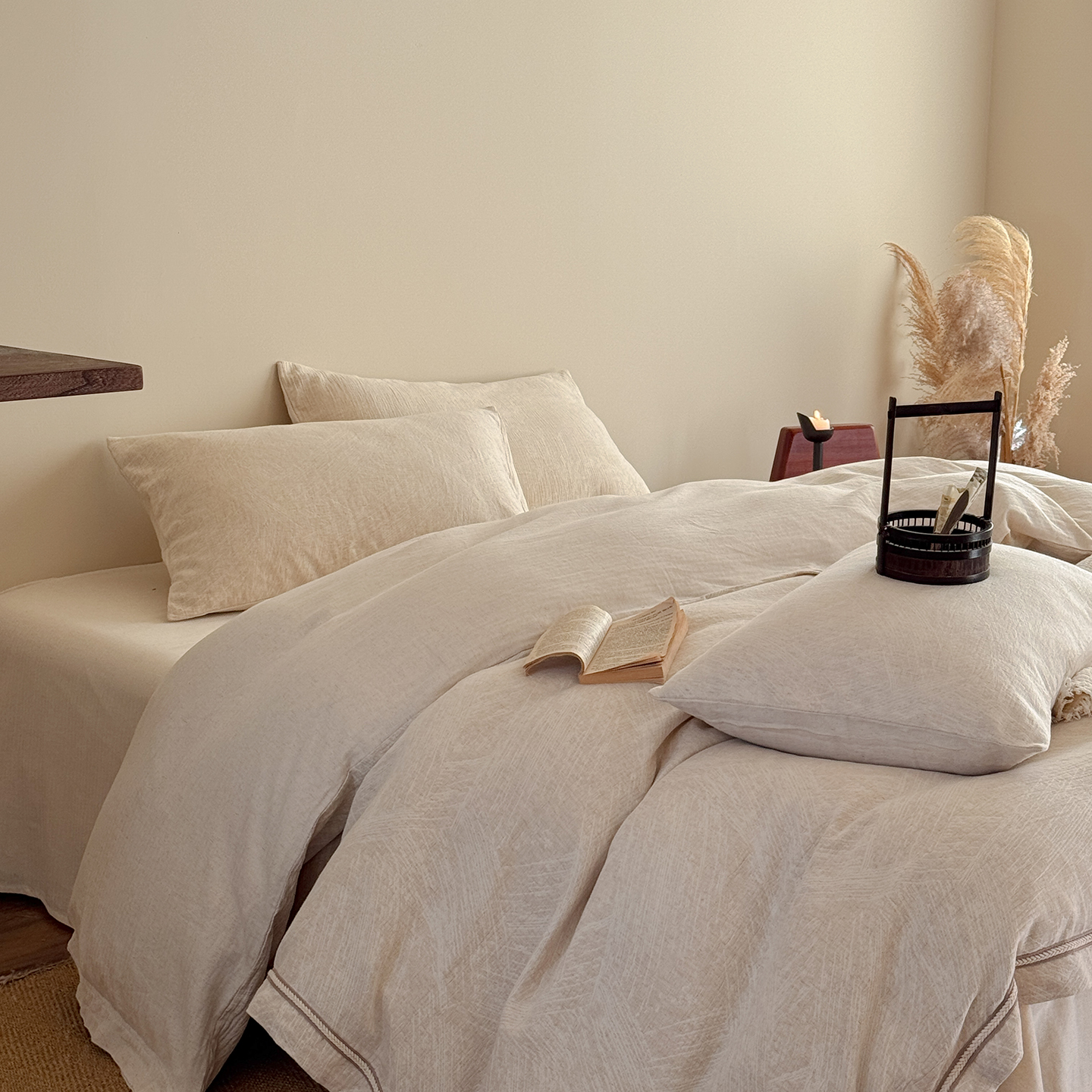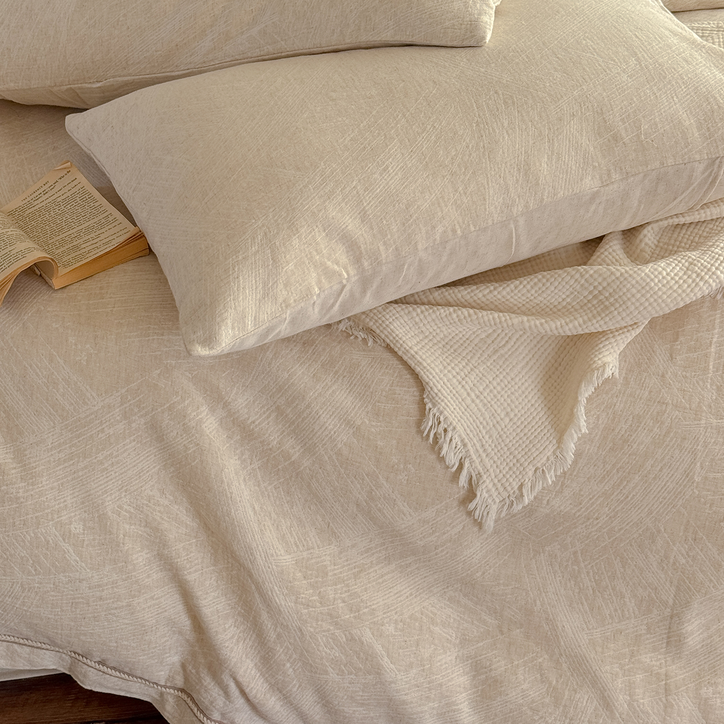 (总)爱丽丝 2026新款色织提花棉麻四件套-层次美学织带款,层次美学织带款