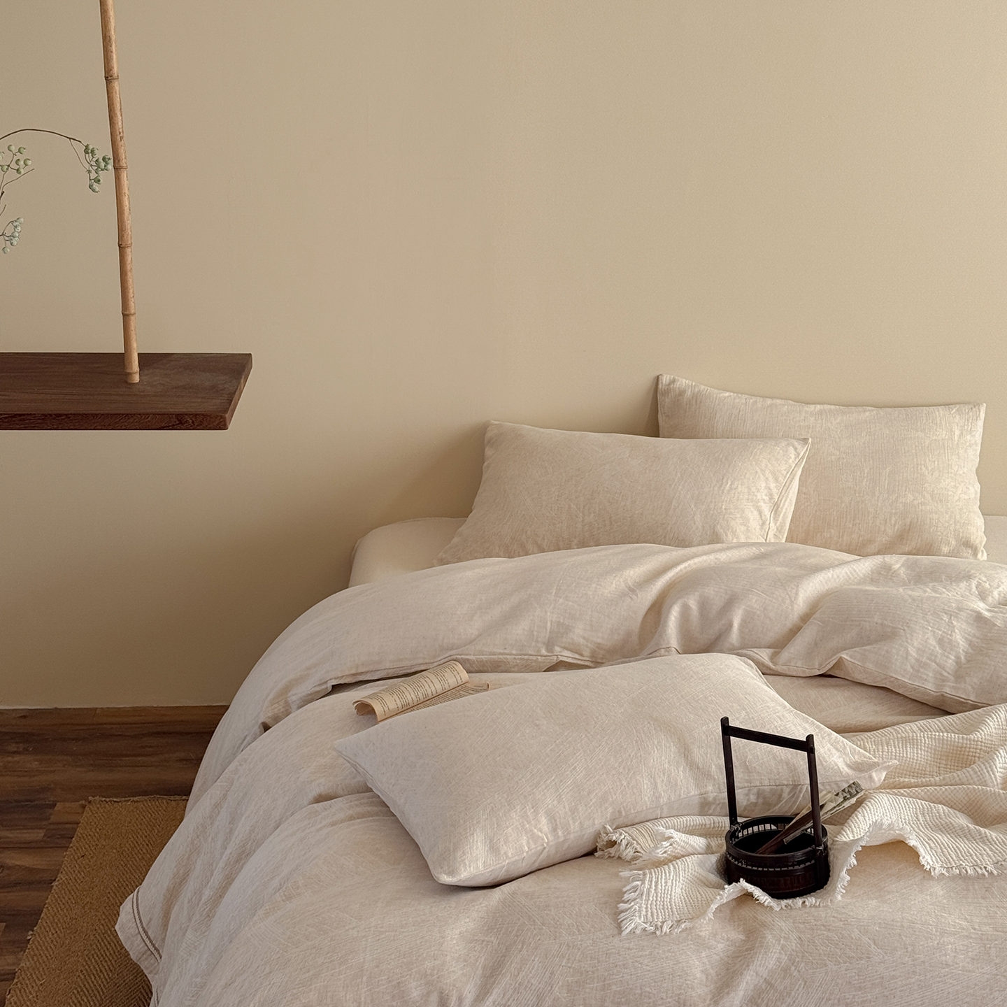 (总)爱丽丝 2026新款色织提花棉麻四件套-如梦令基础款,如梦令基础款