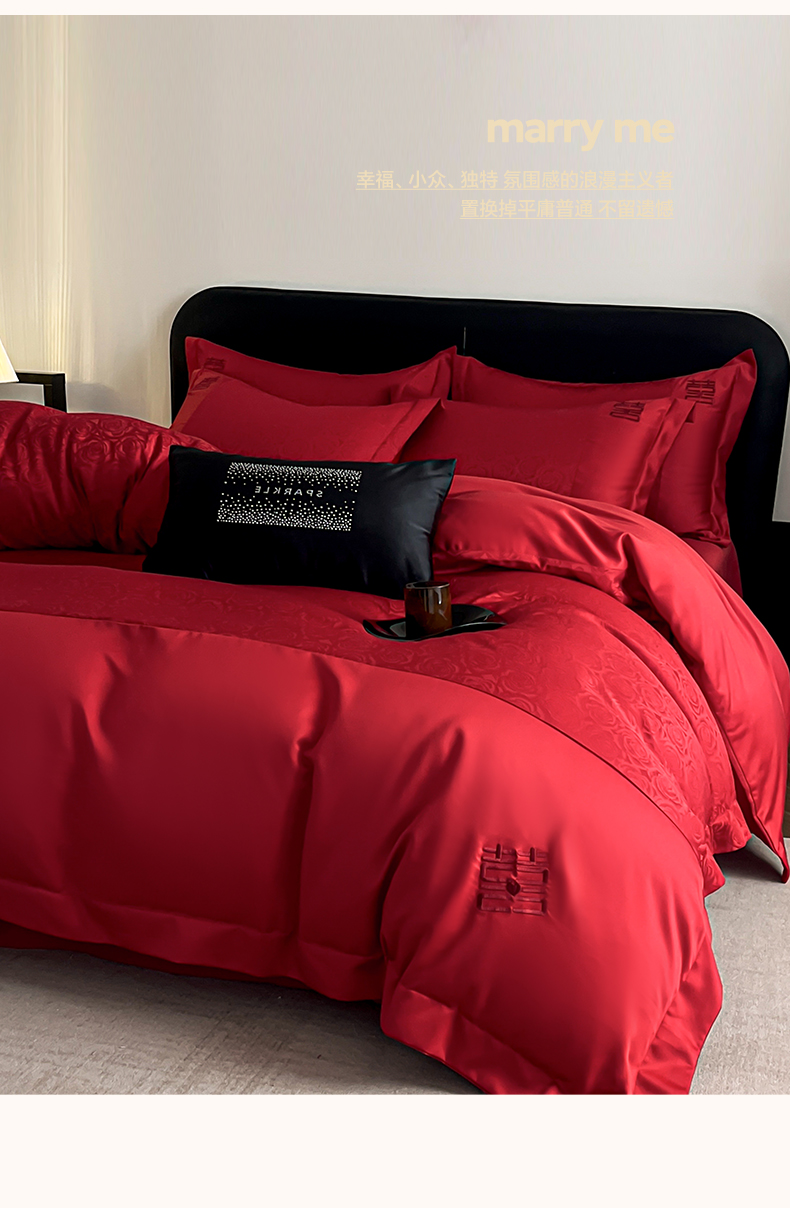 欧乐蒂 2025新款亲肤棉提花婚庆四件套-玫瑰喜事 玫瑰喜事-红