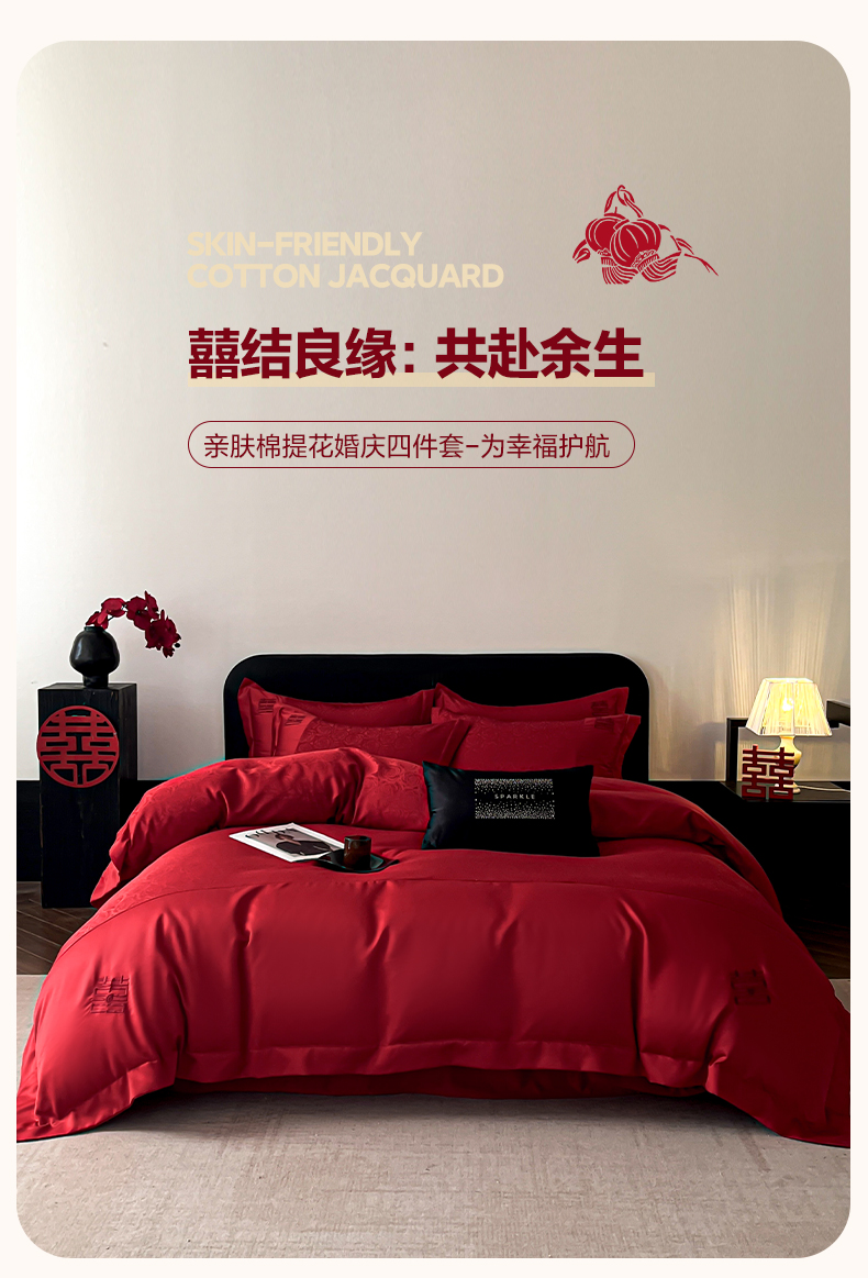 (总)欧乐蒂 2025冬季新品亲肤棉提花刺绣婚庆四件套,龙凤双喜,喜事花开