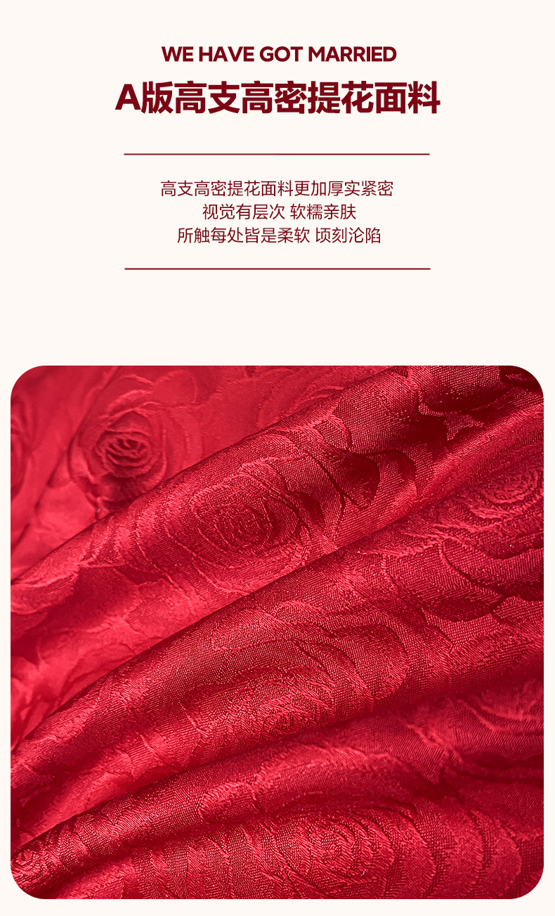 商品名称:欧乐蒂 2025新款亲肤棉提花婚庆四件套-玫瑰喜事 玫瑰喜事-红