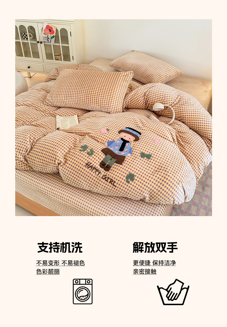 当前位置: 91家纺网 > 商品网购 > 床品套件 > 四件套 > 牛奶绒四件套 > 喜梦缘 2025新款牛奶绒床笠四件套 小女孩