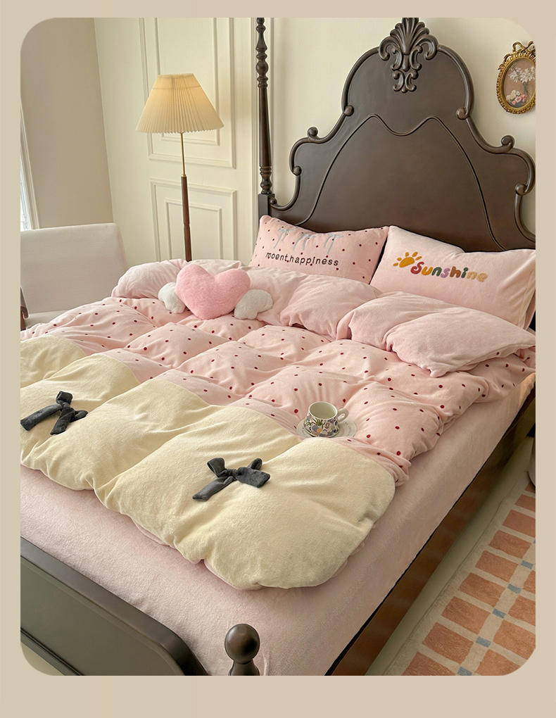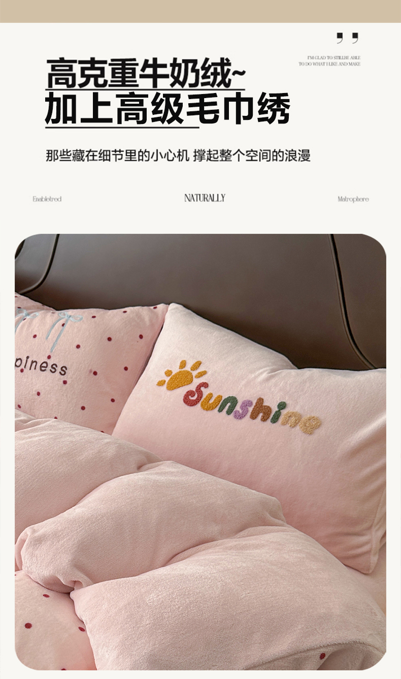 当前位置: 91家纺网 > 商品网购 > 床品套件 > 四件套 > 牛奶绒四件套 > 子钦家纺 2025秋冬新款加厚牛奶绒复古公主风毛巾绣床单床笠四件套 牛奶绒法式复古风-粉波点