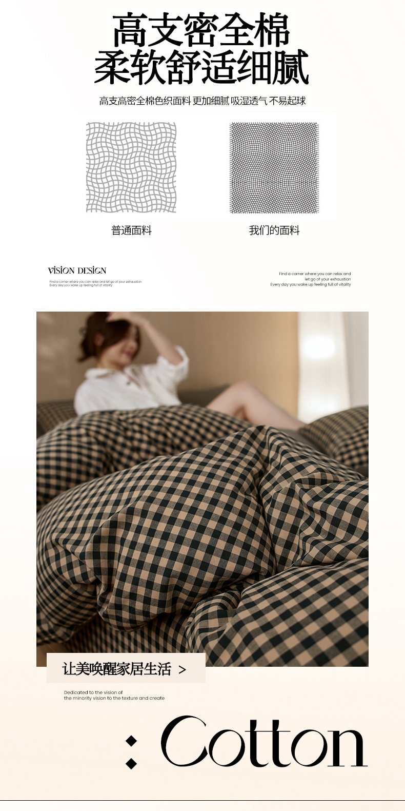 商品名称:(总)启程家纺 2026新款纯棉水洗棉复古小格多规格系列单品被套
