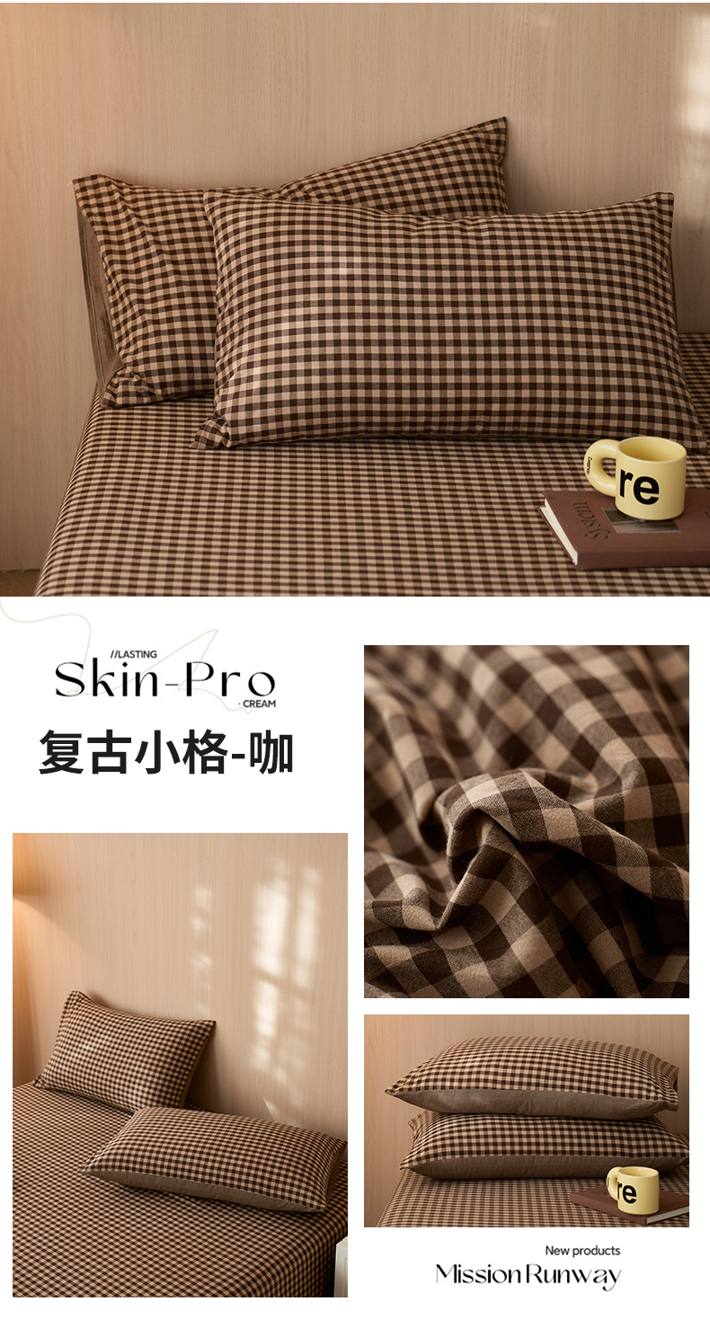 商品名称:启程家纺 2026新款纯棉水洗棉复古小格多规格系列单品枕套 复古小格-咖