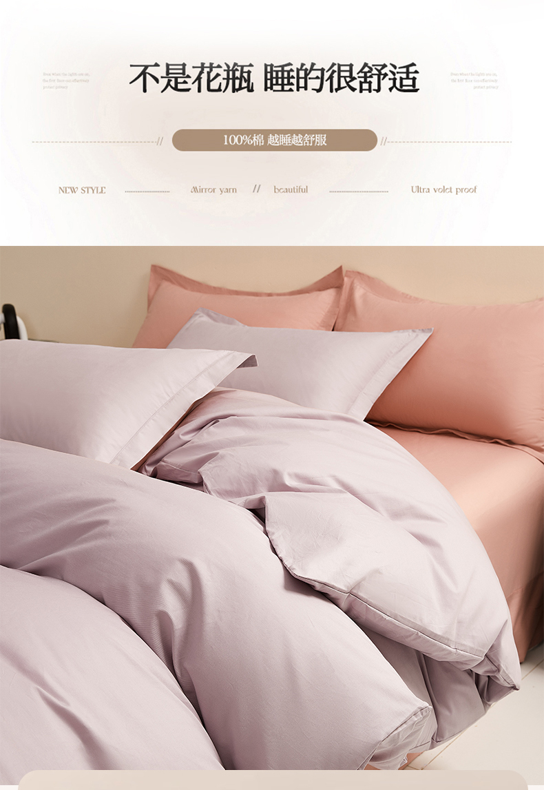 当前位置: 91家纺网 > 商品网购 > 床品套件 > 四件套 > 全棉普通四件套 > 名优家纺 2026新款60S13374高支密全棉印花纯色四件套 加仑紫+樱花粉