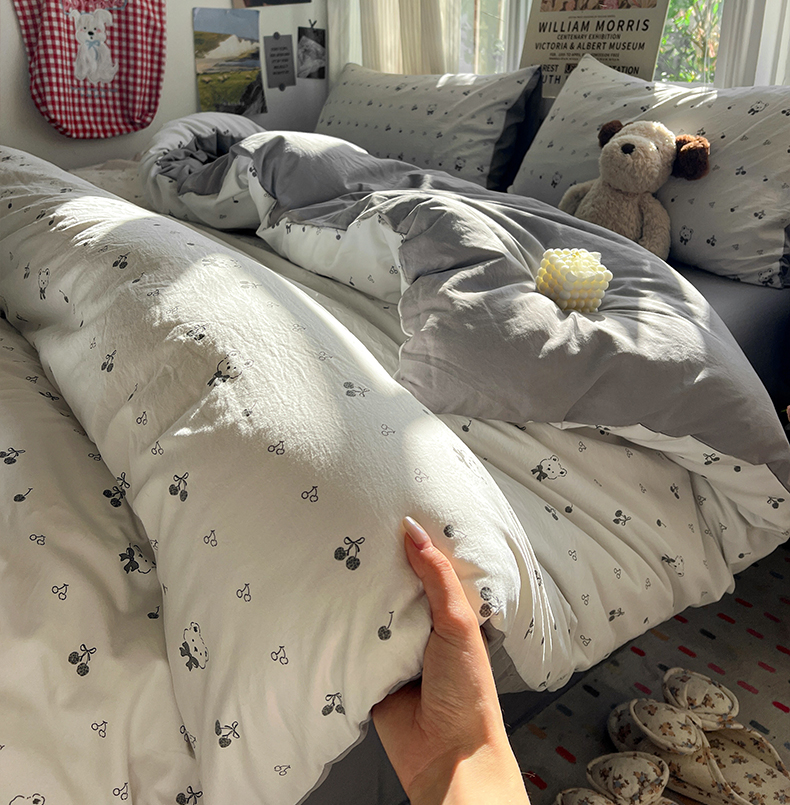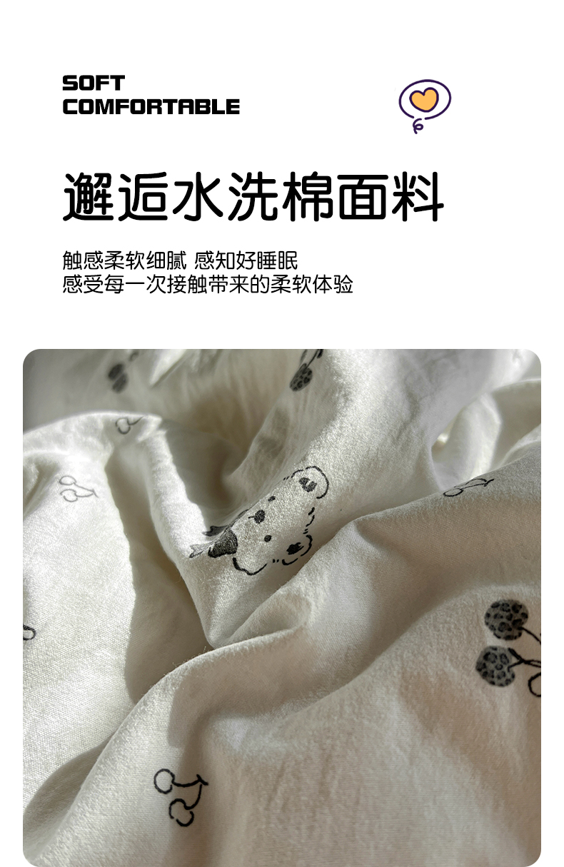 当前位置: 91家纺网 > 商品网购 > 床品套件 > 四件套 > 其它四件套 > 水墨江南 2026新款加厚仿棉古法水洗棉小布袋款印花四件套 樱桃小熊