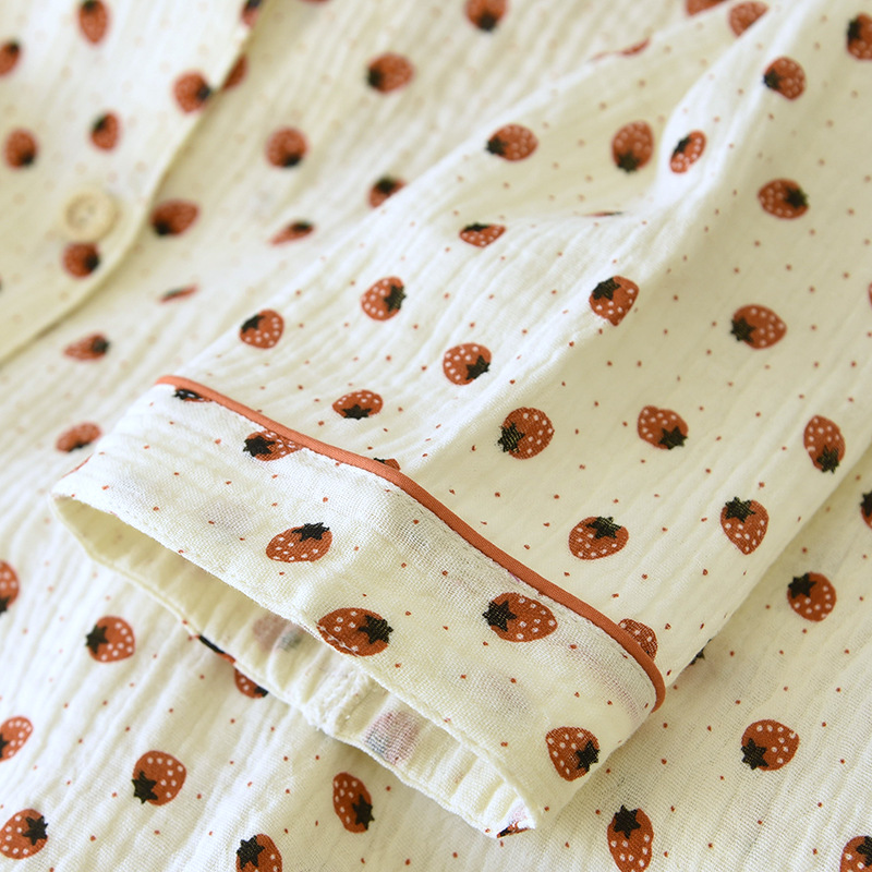 洛兰沙家居馆 2025新款双层绉纱棉纱卡通系列女士家居服睡衣长袖长裤透气舒适四季款纯棉 波点草莓