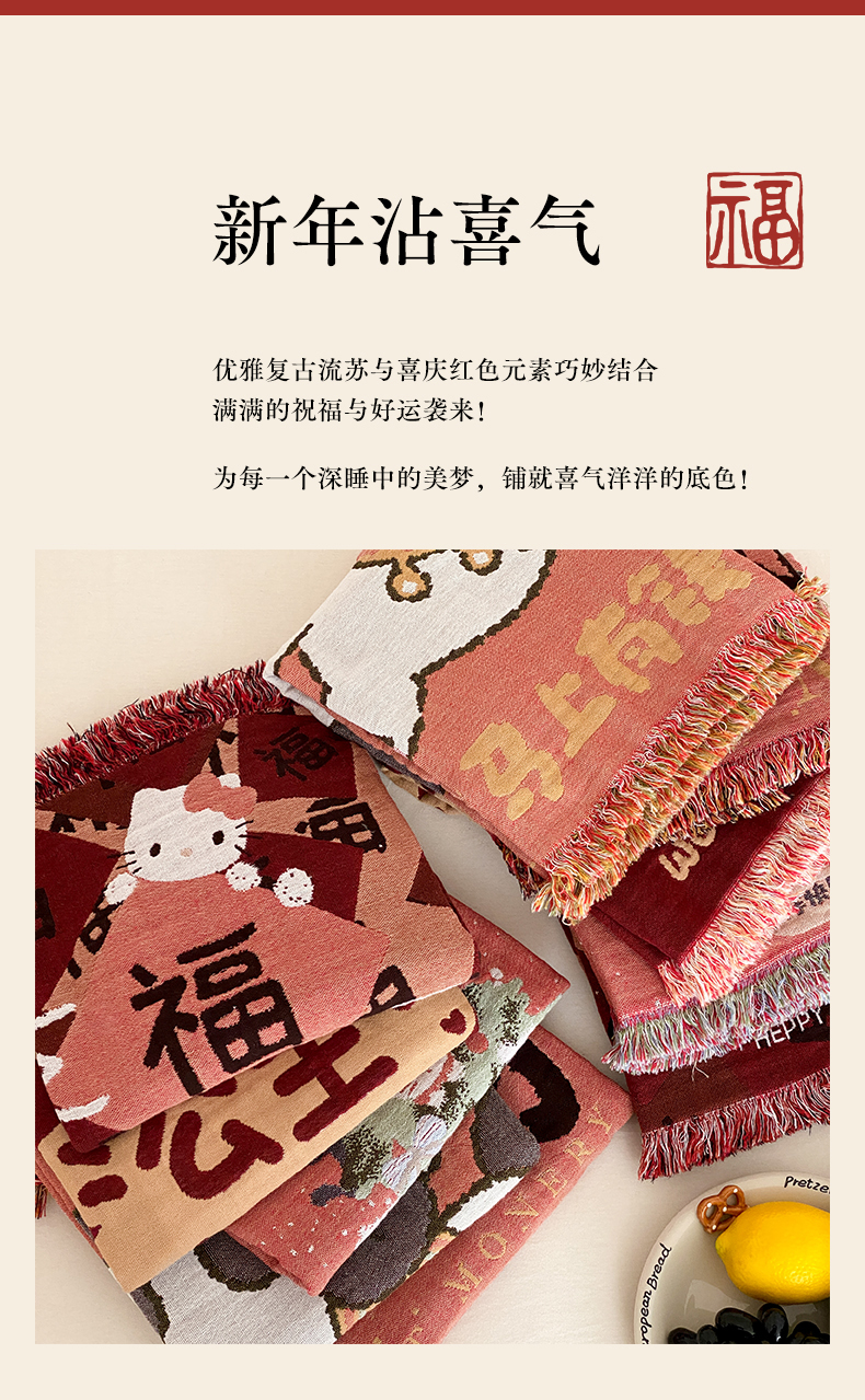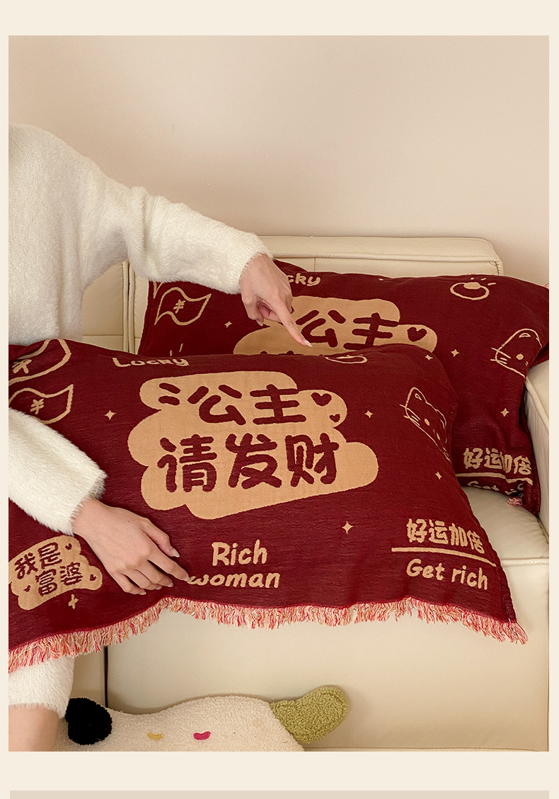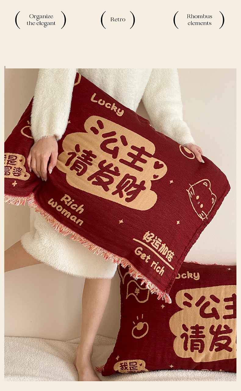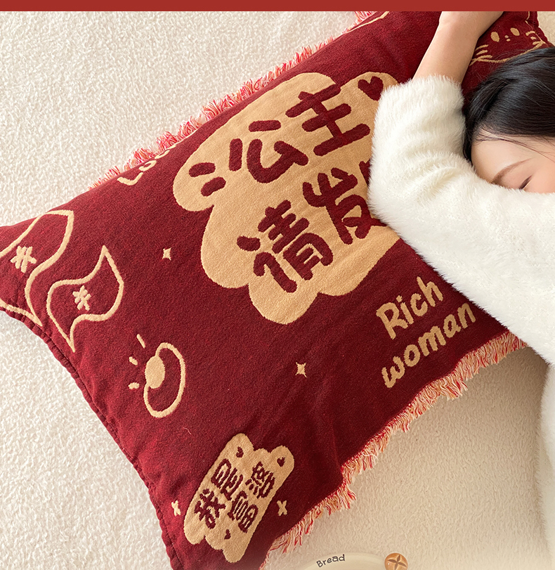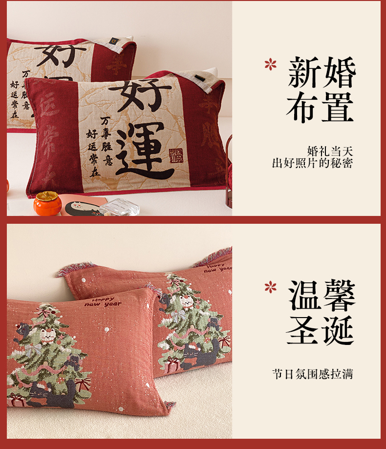 (总)麻依 2025新款四层纱布全棉新年大红枕巾流苏婚庆枕盖,八方来财,发财暴富,福禄,福气满满,福娃,公主发财,好运,锦鲤,马上有钱,平安喜乐,圣诞小猫,新年快乐,组合