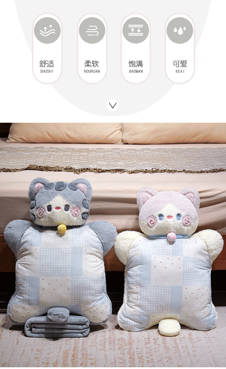 商品名称:仟亿莱 2025新款抱抱猫豆袋三用玩偶抱枕 三用灰猫