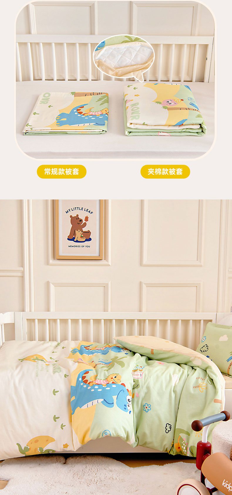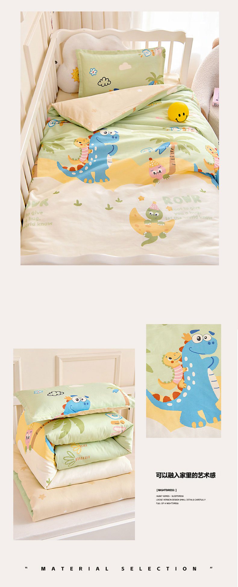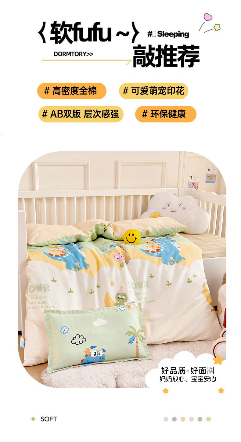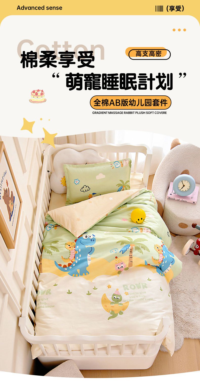 当前位置: 91家纺网 > 商品网购 > 床品套件 > 四件套 > 其它四件套 > 芭伯妮 2026新款全棉AB版幼儿园三件套宝宝午睡被子六件套儿童被套多件套(第一批) 度假恐龙-绿