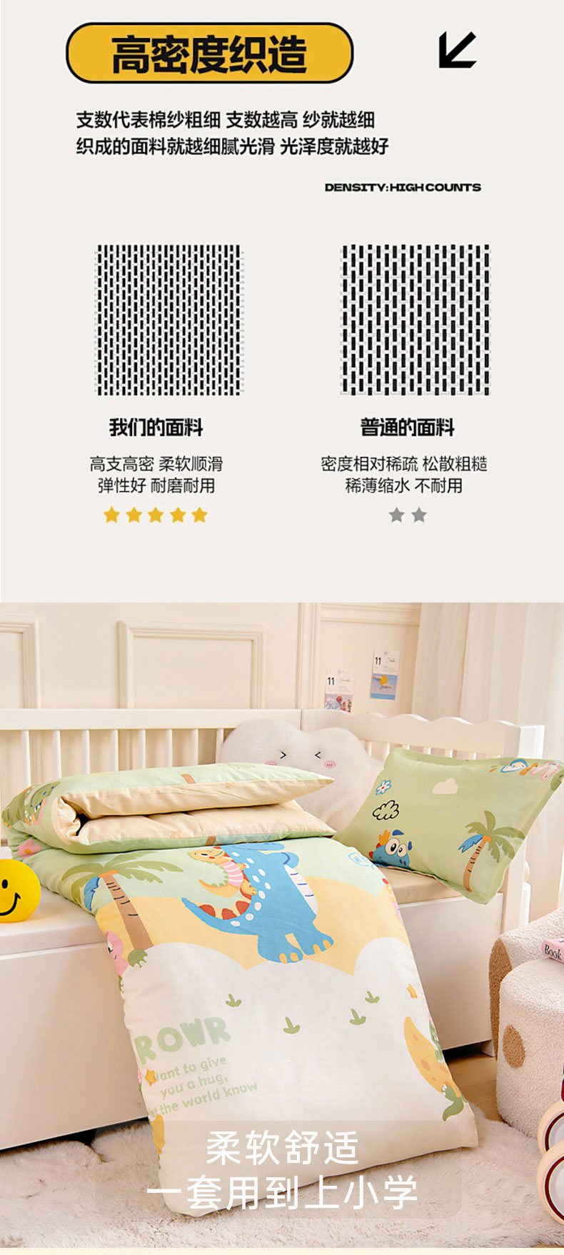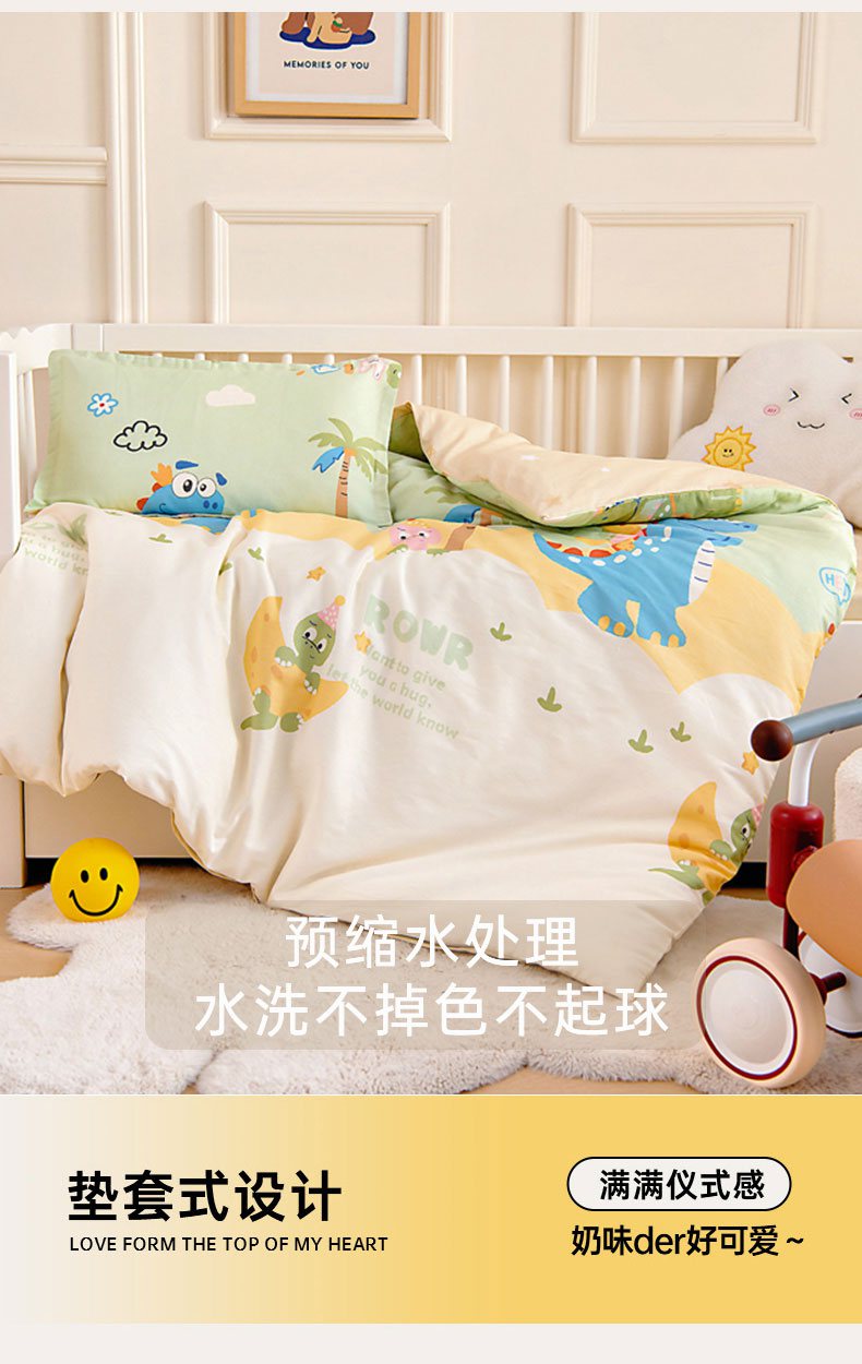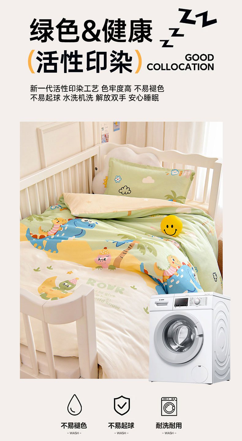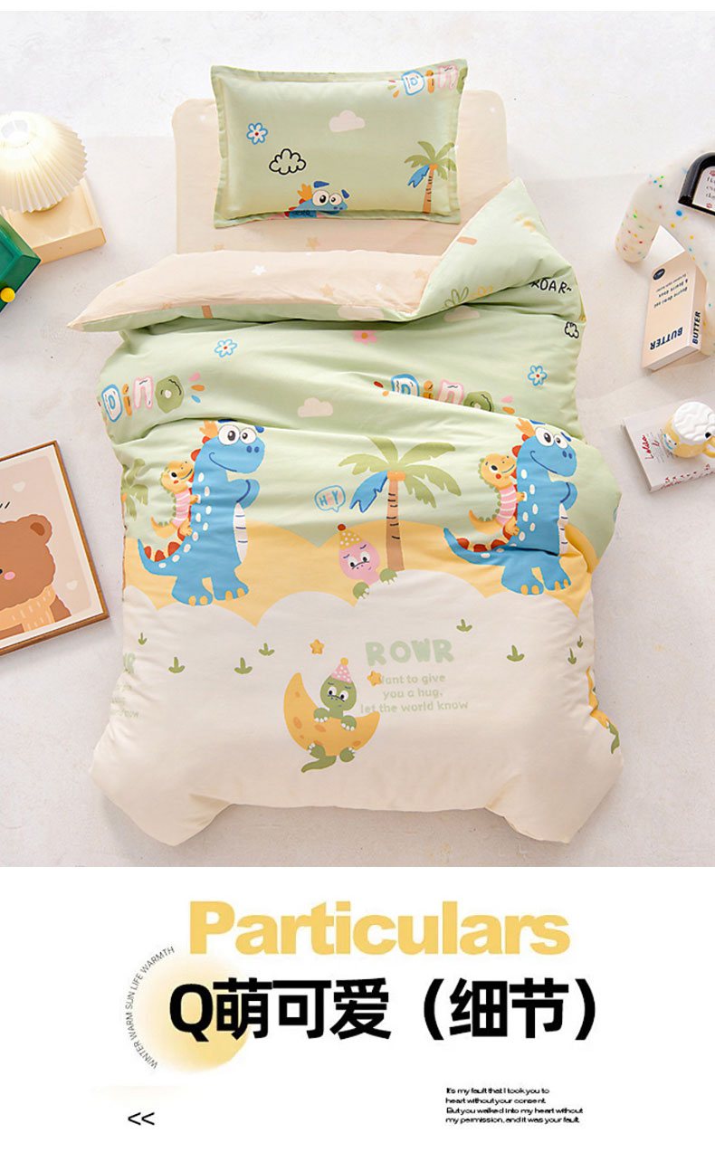 当前位置: 91家纺网 > 商品网购 > 床品套件 > 四件套 > 其它四件套 > 芭伯妮 2026新款全棉AB版幼儿园三件套宝宝午睡被子六件套儿童被套多件套(第一批) 度假恐龙-绿