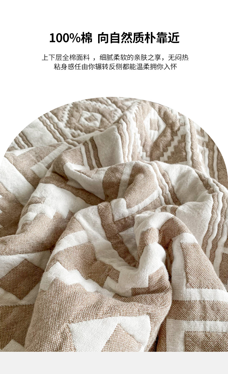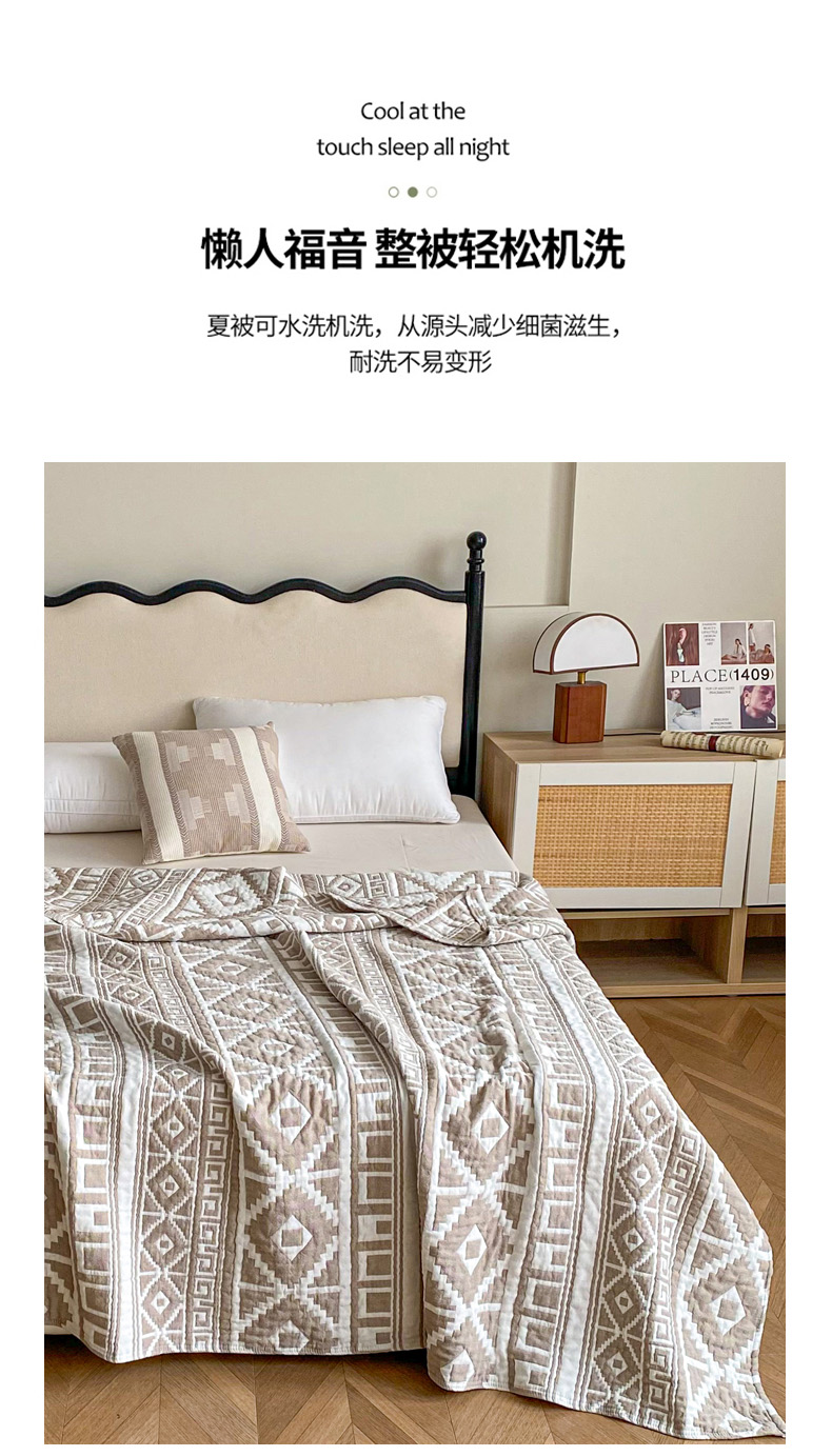 (总)卡奥 2025款无印风日式水洗纯棉三层纱夏被毛巾被盖毯午睡毛毯,方格花-粉,方格花-蓝灰,方格花-米灰,十字格-粉,十字格-灰,十字格-米,几何-灰,几何-蓝