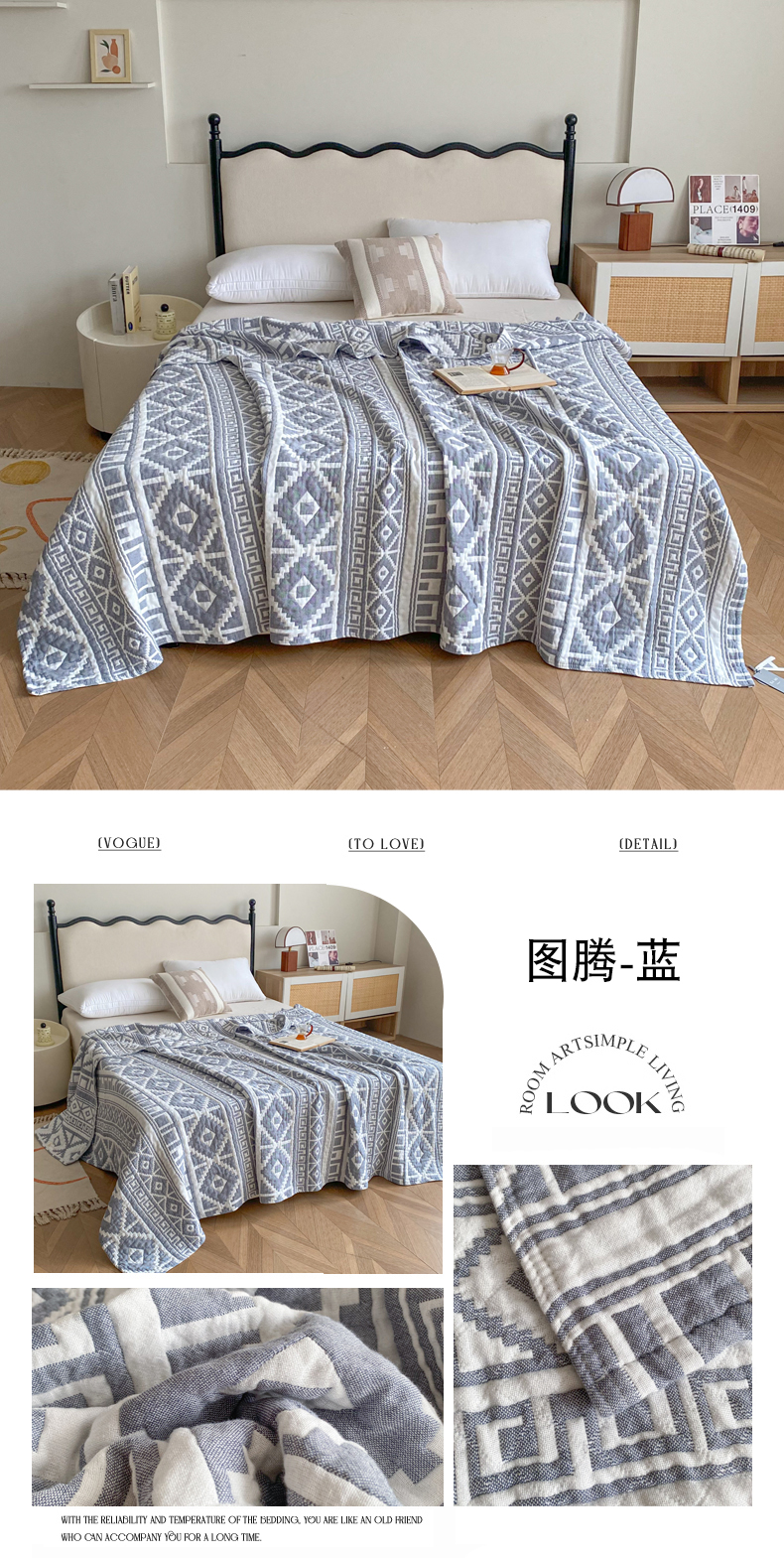 (总)卡奥家纺 2026新款水洗全棉纯棉四层纱盖毯毛巾被夏凉被夏被空调被-图腾系列