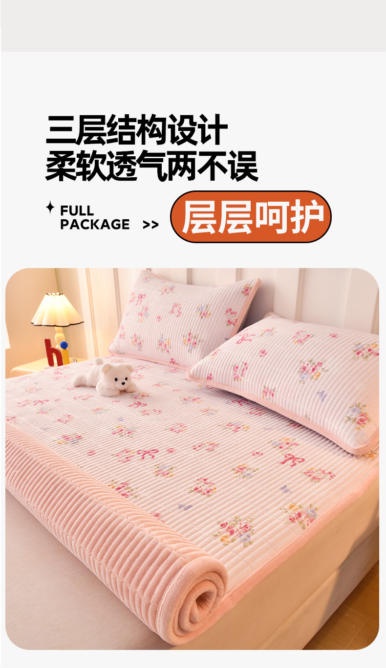 (总)悠米悠家 2025新款A类羊羔绒夹棉大豆床笠床垫,白色,粉色,灰色,橘色,咖色