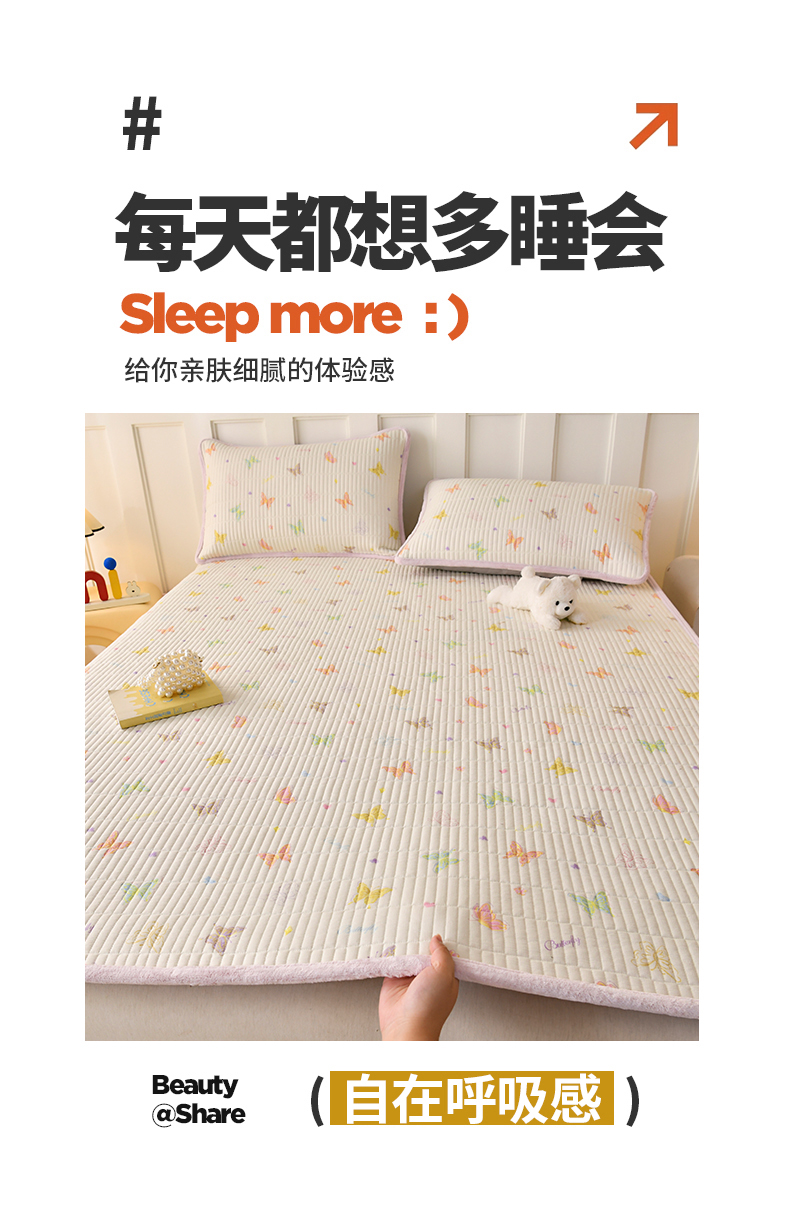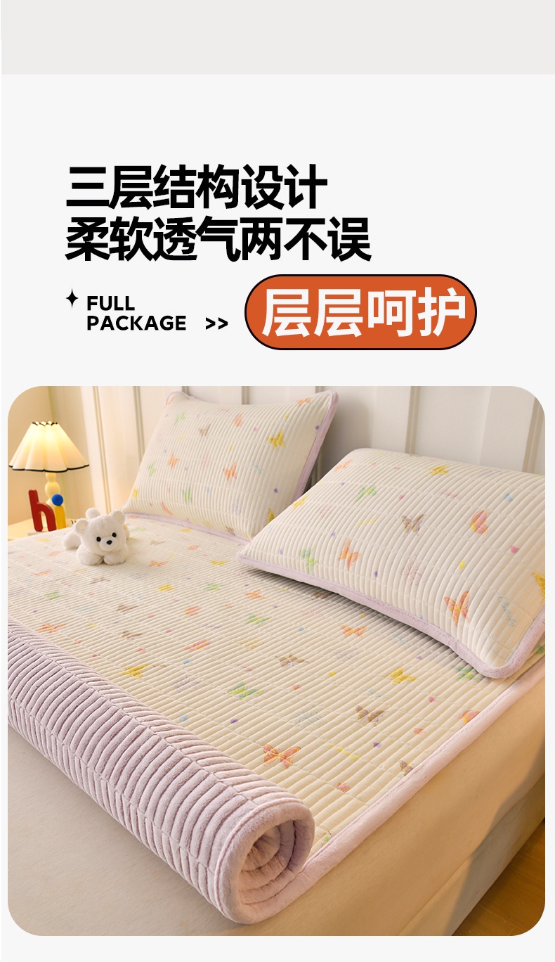 (总)悠米悠家 2025新款A类羊羔绒夹棉大豆床笠床垫,白色,粉色,灰色,橘色,咖色