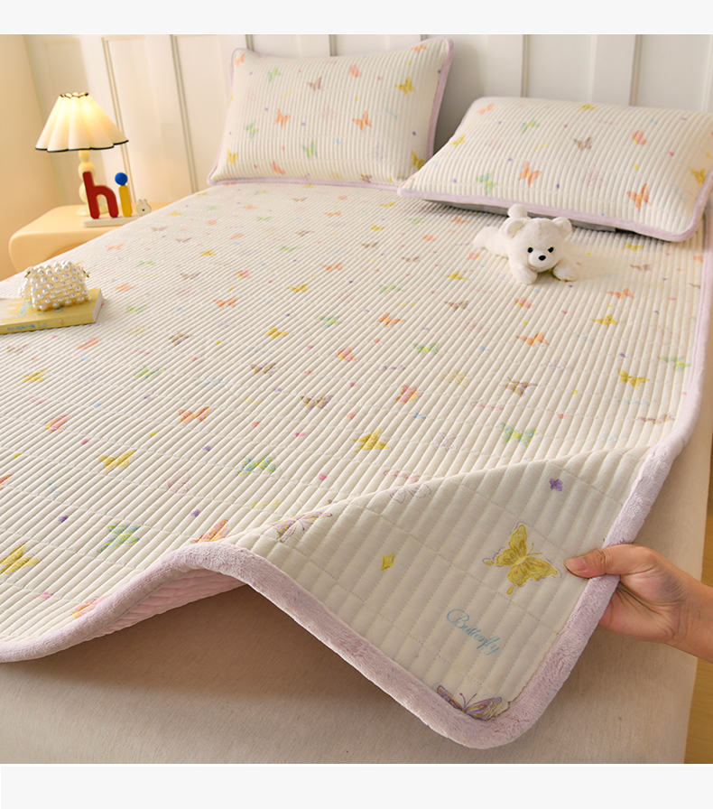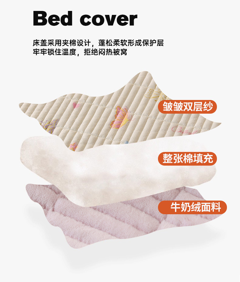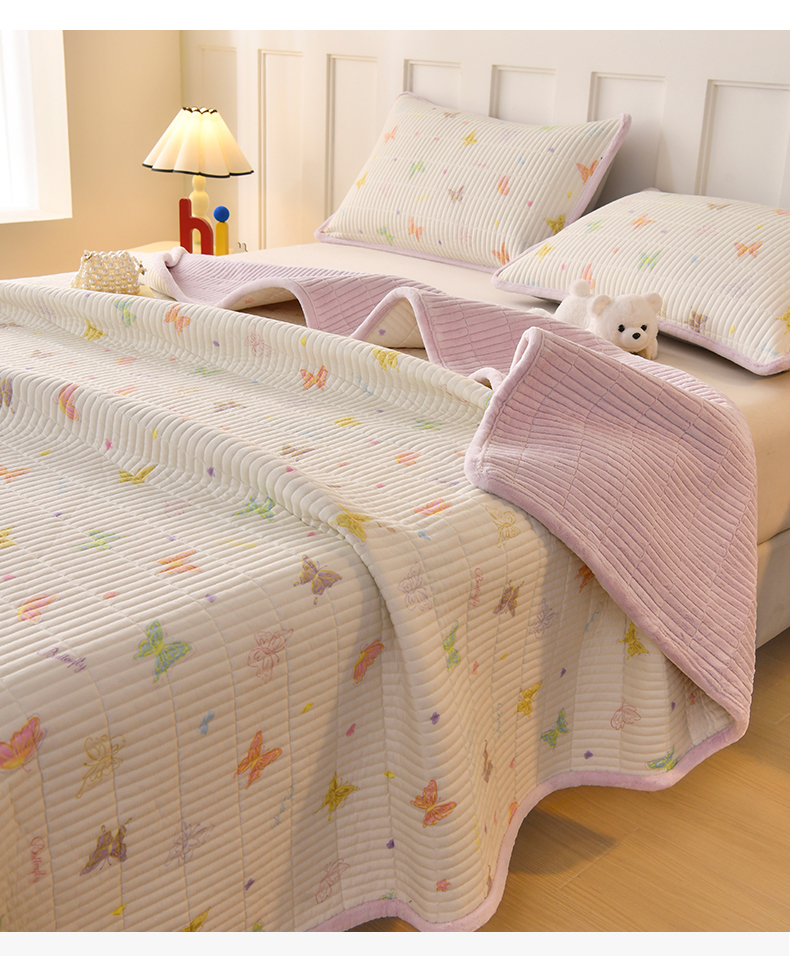 • 91家纺网 家纺一手货源 找家纺 悠米悠家 2026新款卡通棉拼绒夹棉床盖单品床盖床盖单件 温软蝶梦