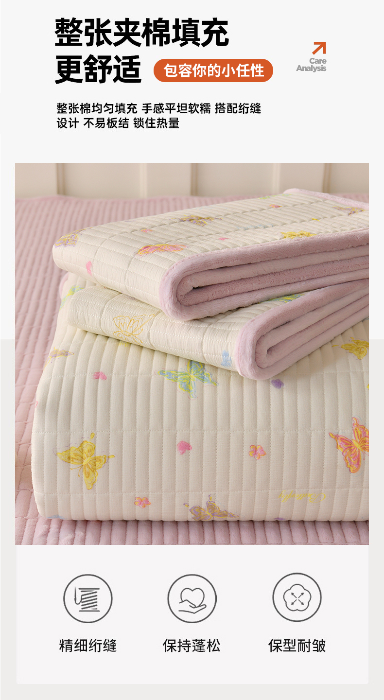 悠米悠家 2026新款卡通棉拼绒夹棉床盖单品床盖床盖单件 温软蝶梦