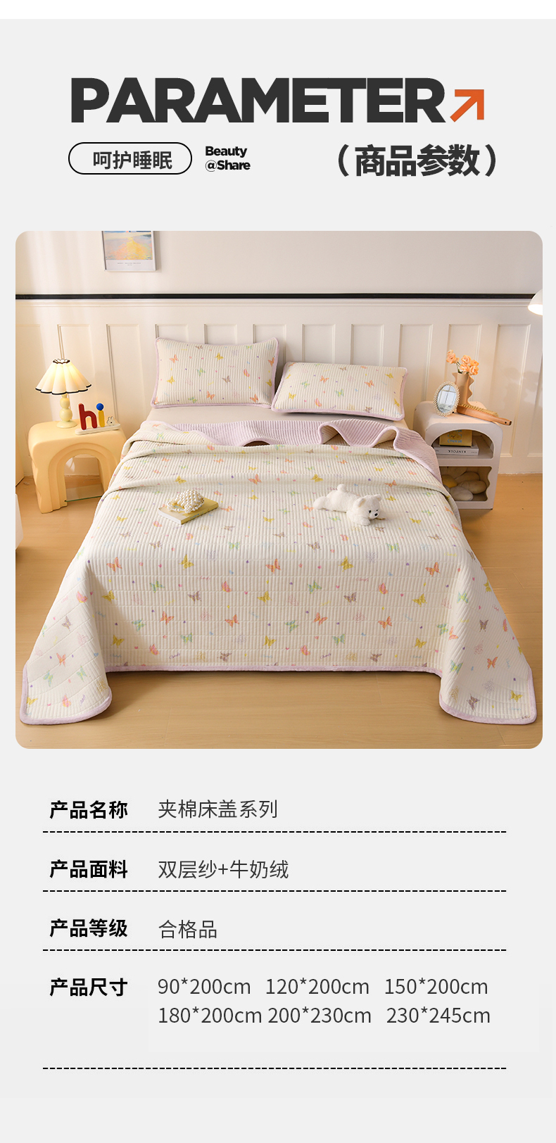 当前位置: 91家纺网 > 商品网购 > 床上用品 > 床盖 > 悠米悠家 2026新款卡通棉拼绒夹棉床盖单品床盖床盖单件 温软蝶梦