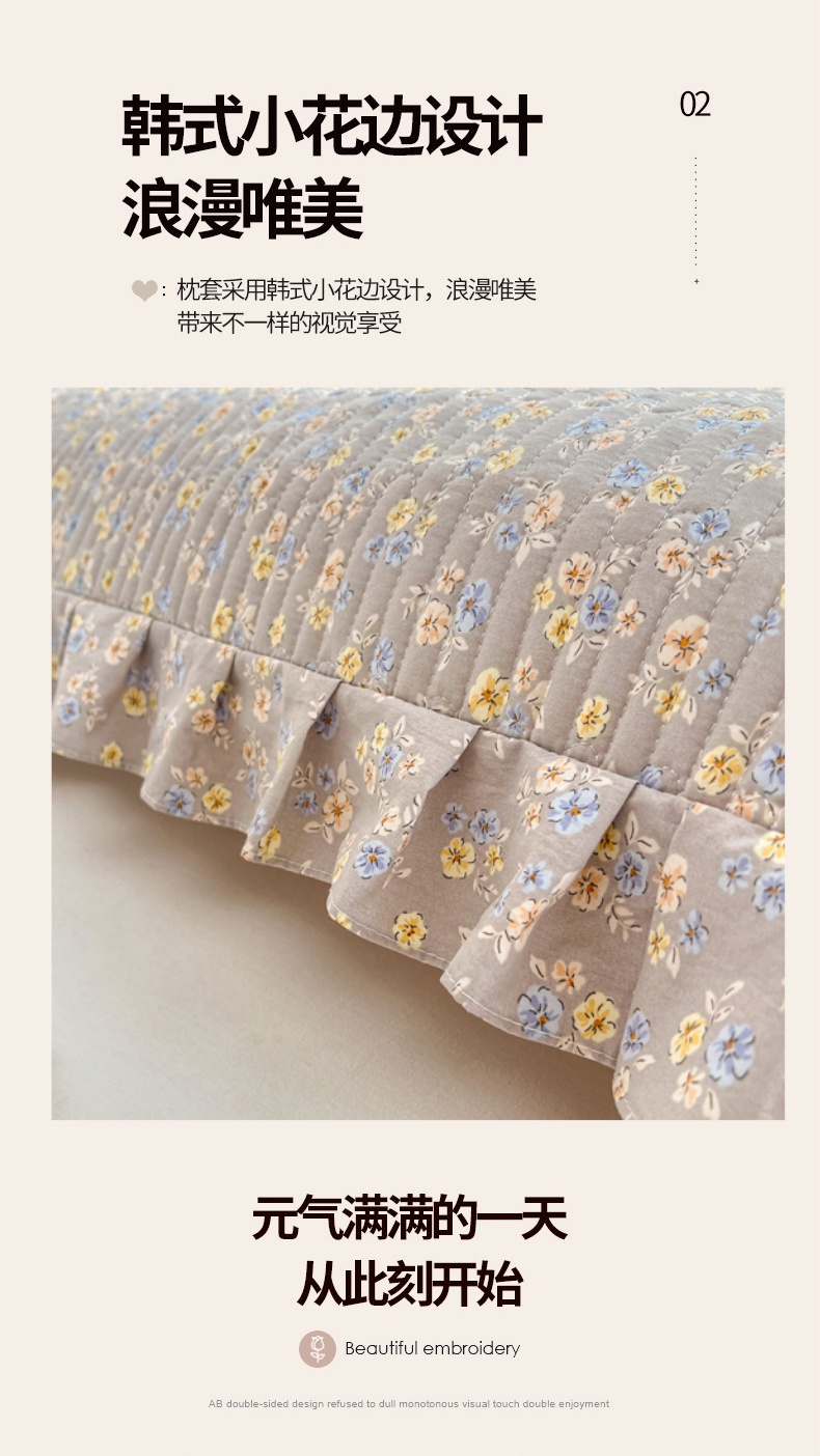 • 91家纺网 家纺一手货源 找家纺 圣比熊 2026新款A类云朵棉夹棉花边枕套宿舍情侣双人加长枕芯内胆套-双人枕套 花无归期(花边夹棉)