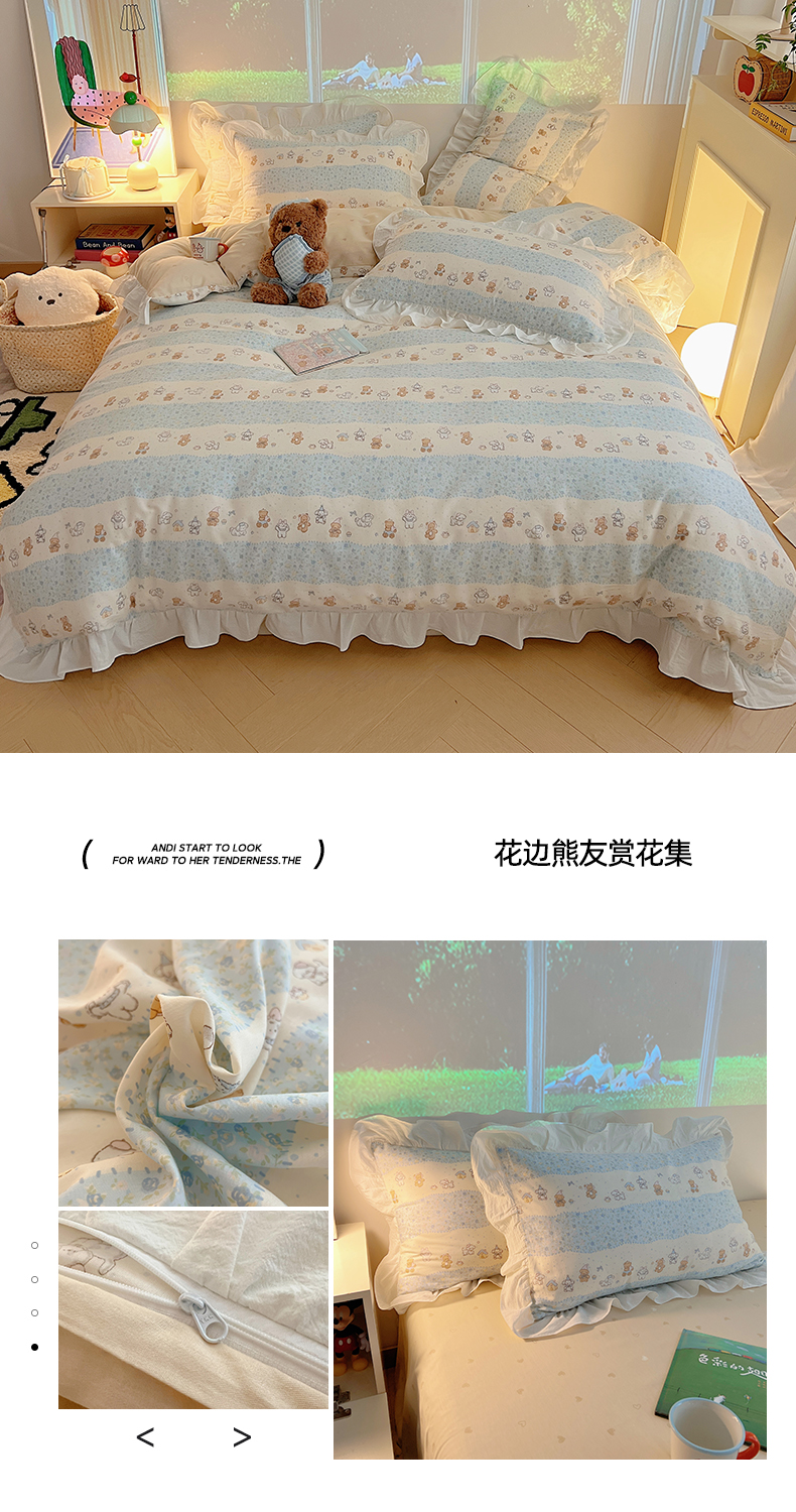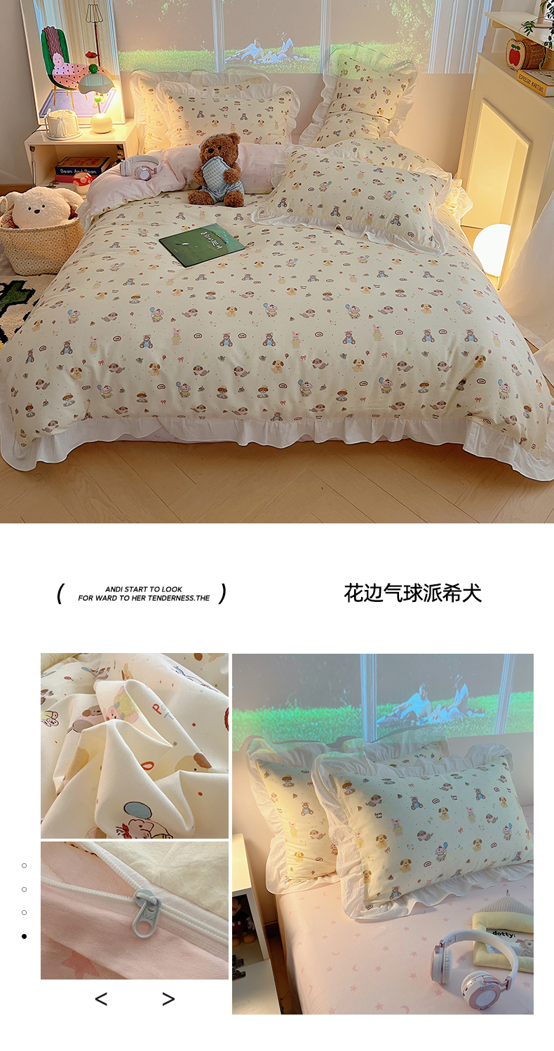 (总)六巷胡同 2025新款韩式INS卡通减龄花边款全棉四件套(第三系),花边波点嘟嘟猫,花边点点面包犬,花边调皮蔷薇狗,花边法棍滑板狗,花边粉格元气猫,花边哈喽泡芙猫,花边蓝格邦尼熊,花边蓝格插画犬,花边泡芙萌趣狗,花边森林音乐会,花边仙人掌粉象,花边熊熊猫咪崽,花边郁金香狗狗